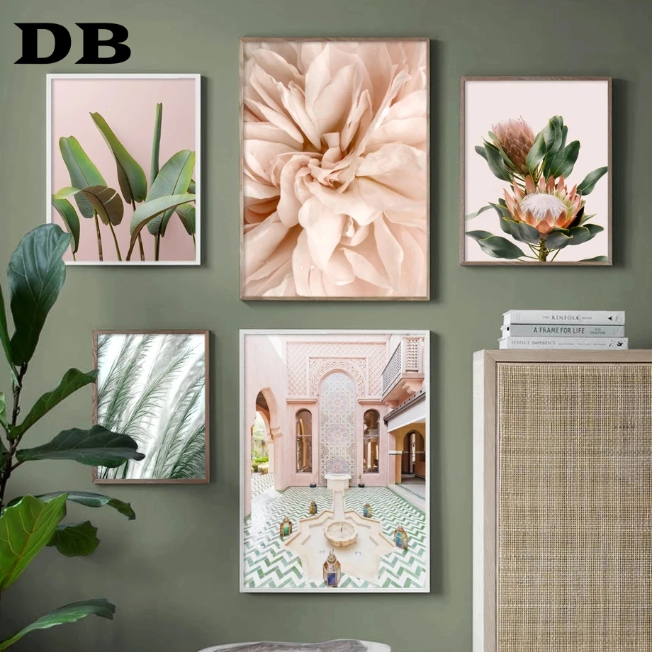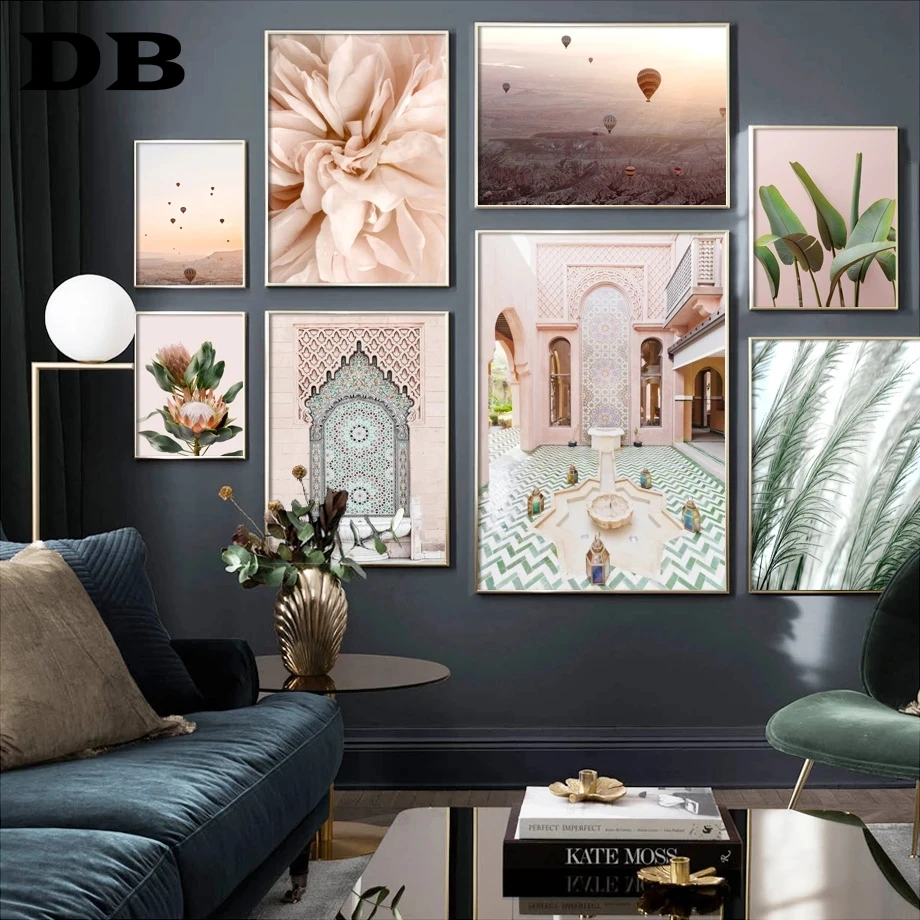 Исламское здание, цветы, листья, воздушный шар, настенный художественный принт, холст, живопись, скандинавский постер, настенные картины для декора гостиной