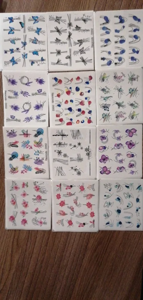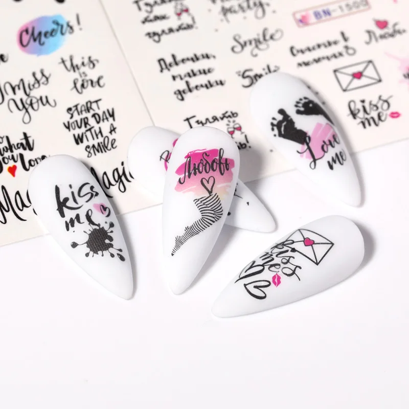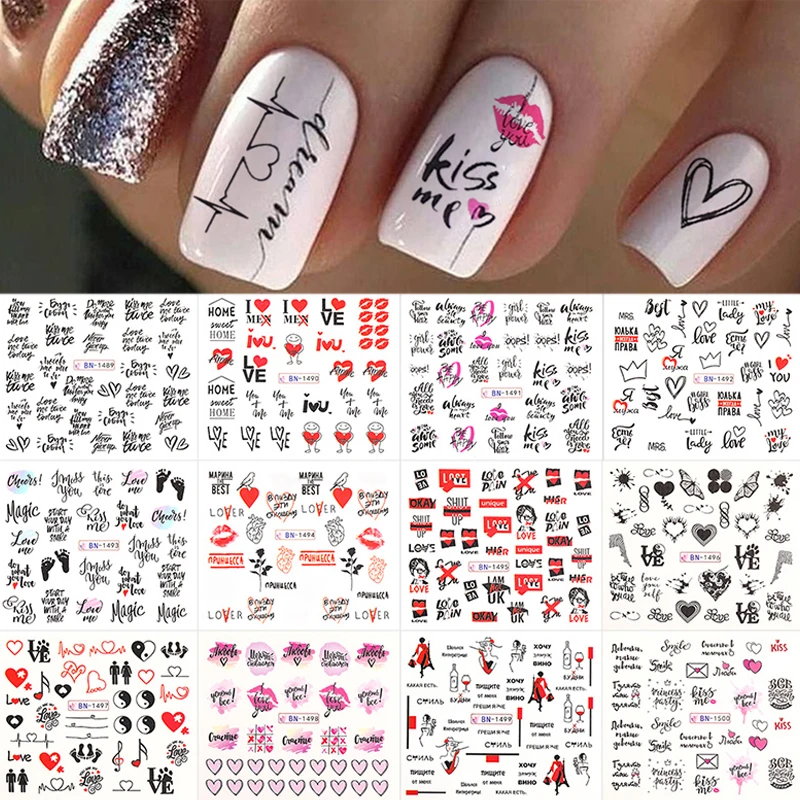 Наклейки для ногтей, с надписями и цветами, 12 шт.