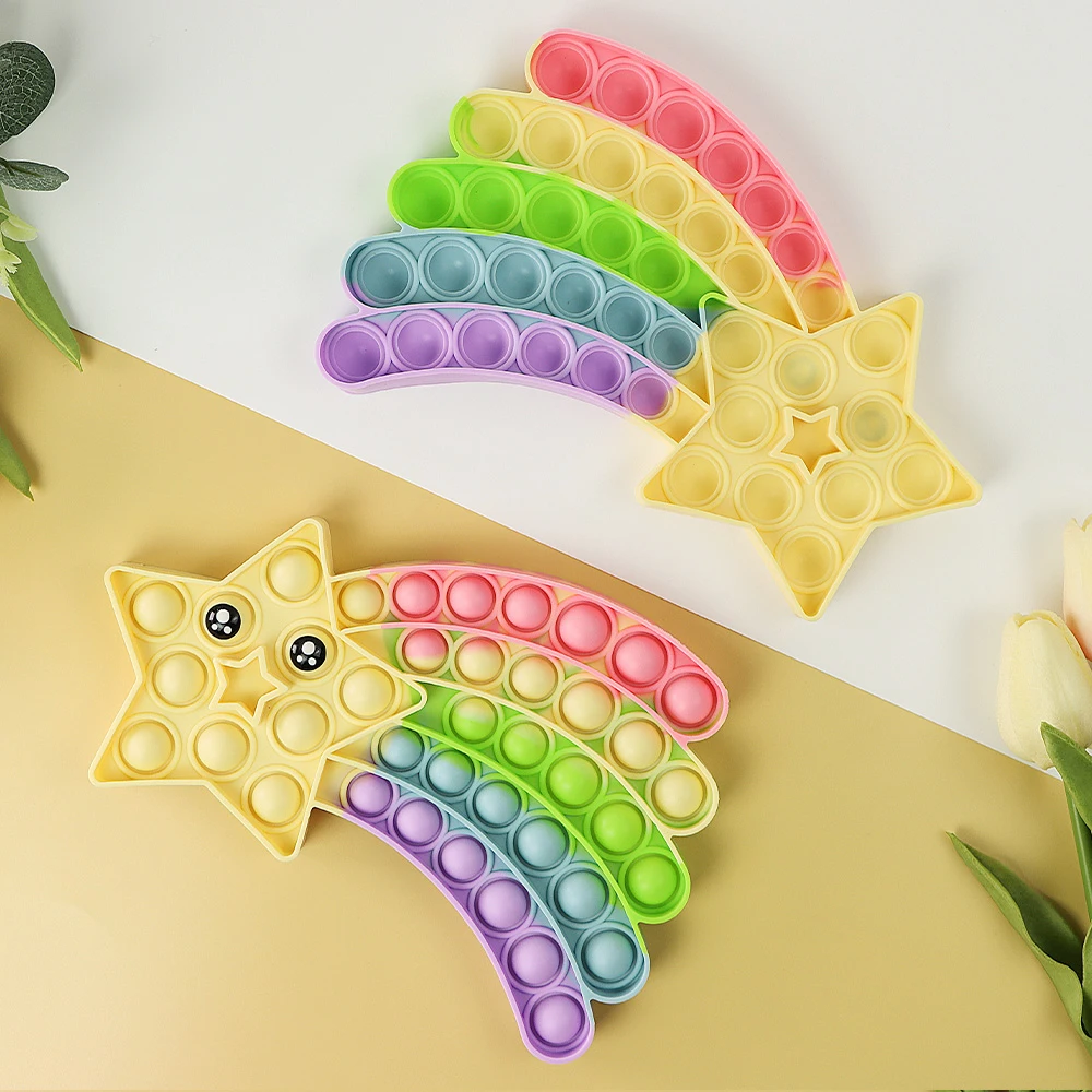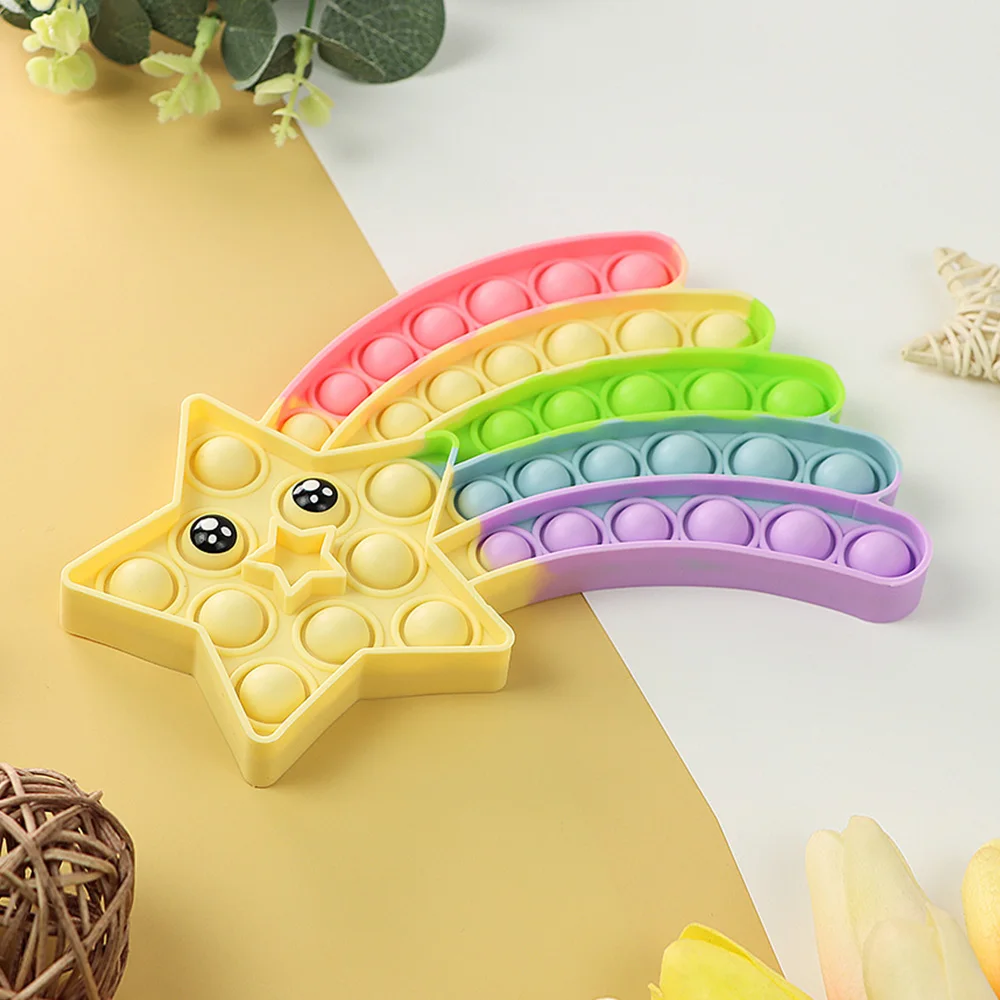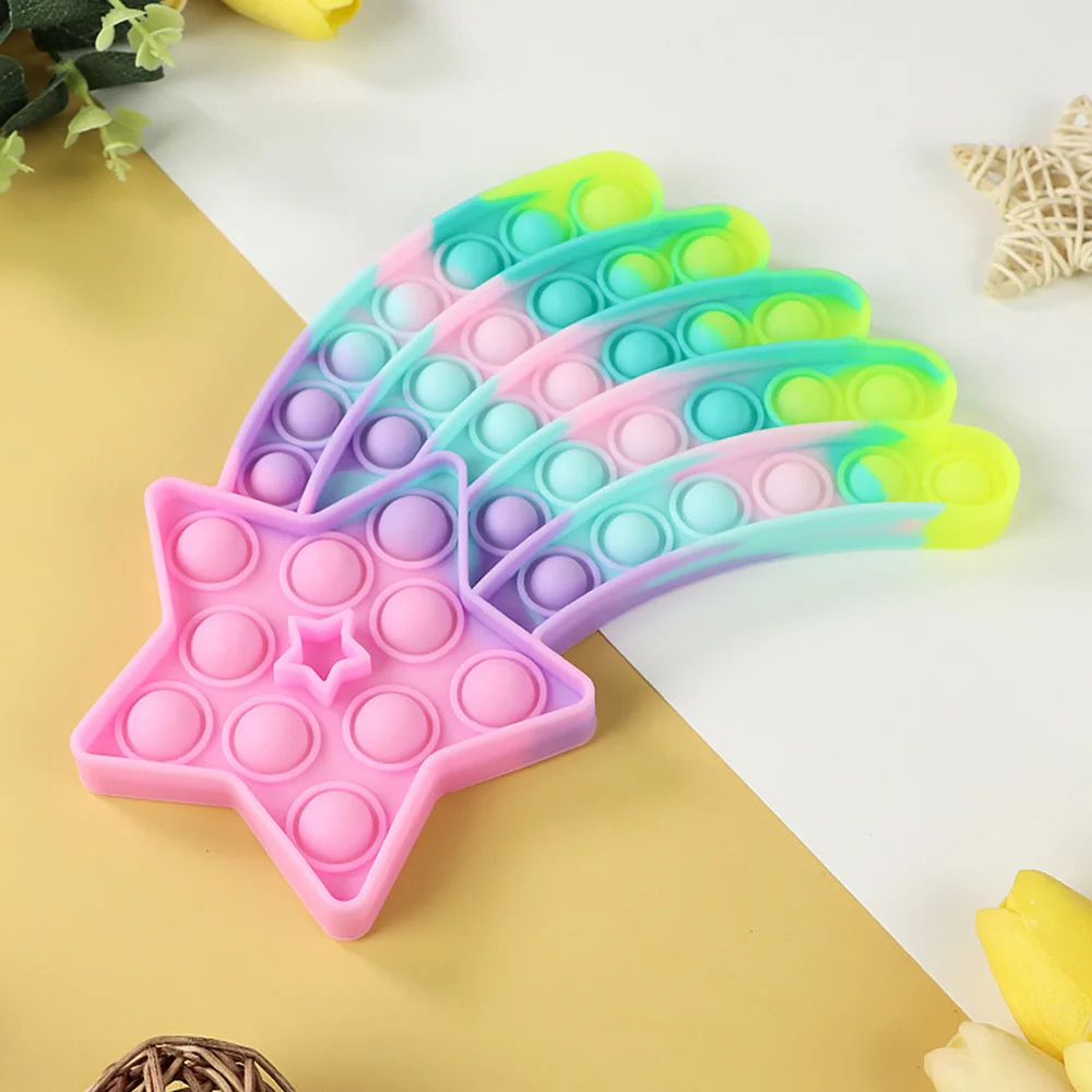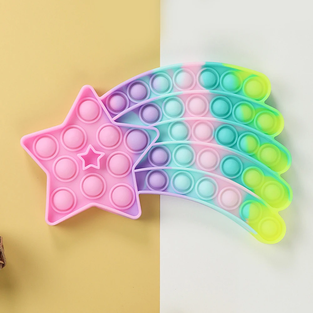 Продукт изготовлен из высококачественного пищевого силикона и получил соответствующие сертификаты проверки качества. Нетоксичный и безвкусный, и может быть очищен кипятком. Различные яркие цвета легко получить любимый для детей.При нажатии на пузырь будет слабый звук. После окончания игры вы можете перевернуть игрушку, чтобы начать следующий раунд игры.Его можно использовать для детей в возрасте до 3 лет, чтобы использовать способность ребенка захватывать предметы. Когда дети играют, они могут осуществлять свое логическое мышление и навыки расчета.