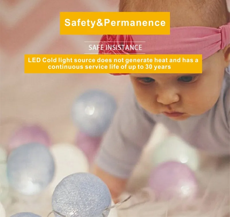 Светодиодная гирлянда с хлопковыми шариками, уличная Рождественская лампа-лента для свадьбы, вечеринки, праздника, торгового центра, спальни, декоративный ночник, 6 см
