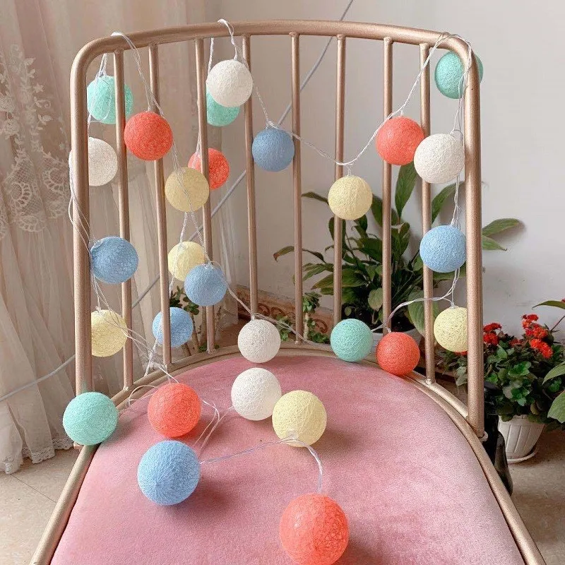 Гирлянда из 20 светодиодных хлопковых шариков, сказочное освещение,...