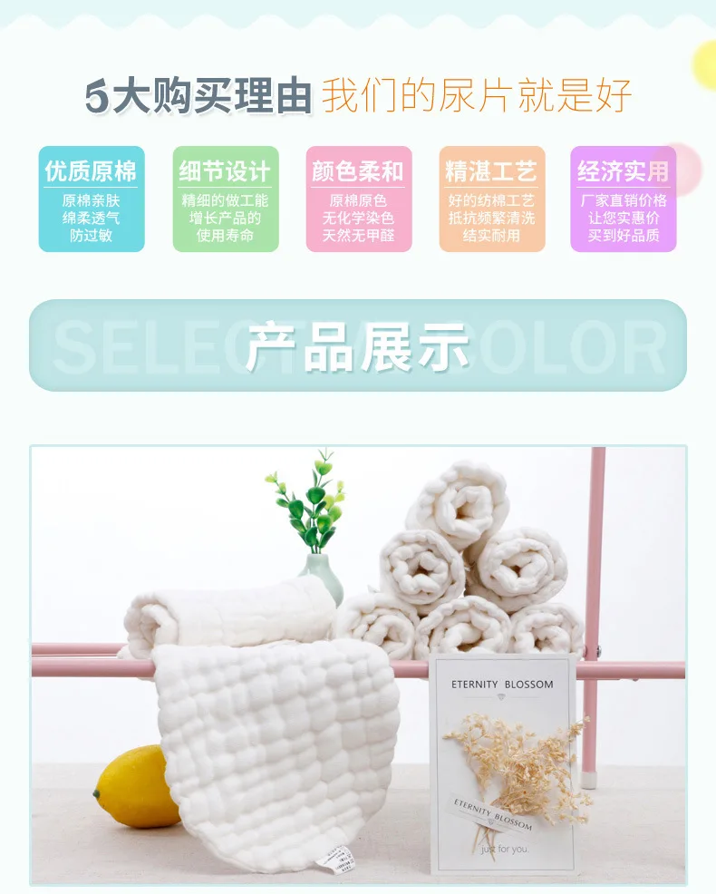 5 шт.лот, 12 слоев, 100% хлопок, белого цвета, супервпитывающая дыш...