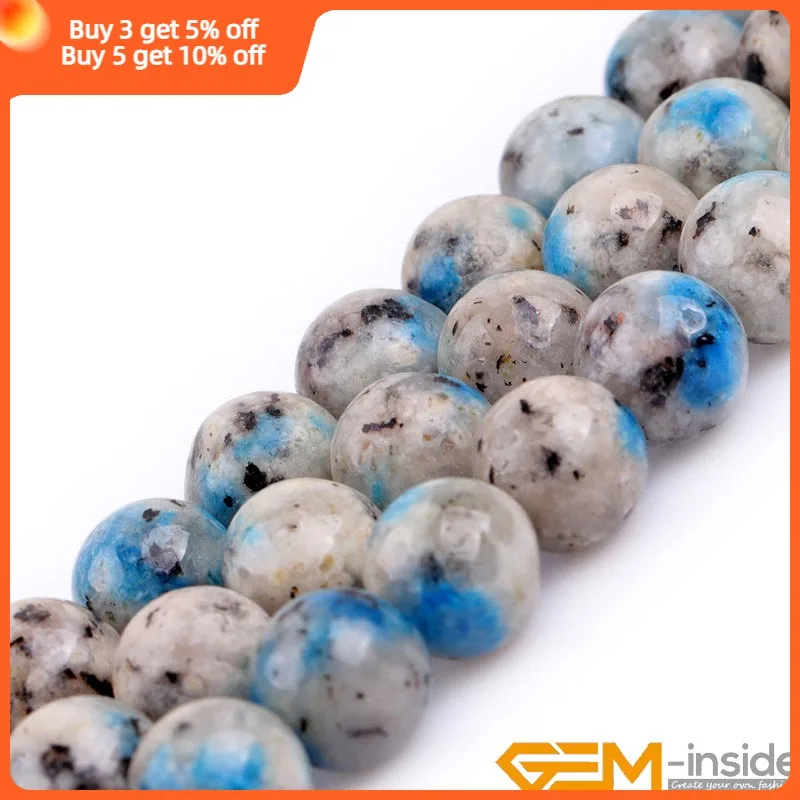 Круглый 100% натуральный синий K2 Azurites камень бусины для изготовления ювелирных изделий 15 дюймов прядь свободные DIY браслет ожерелье 6810 мм