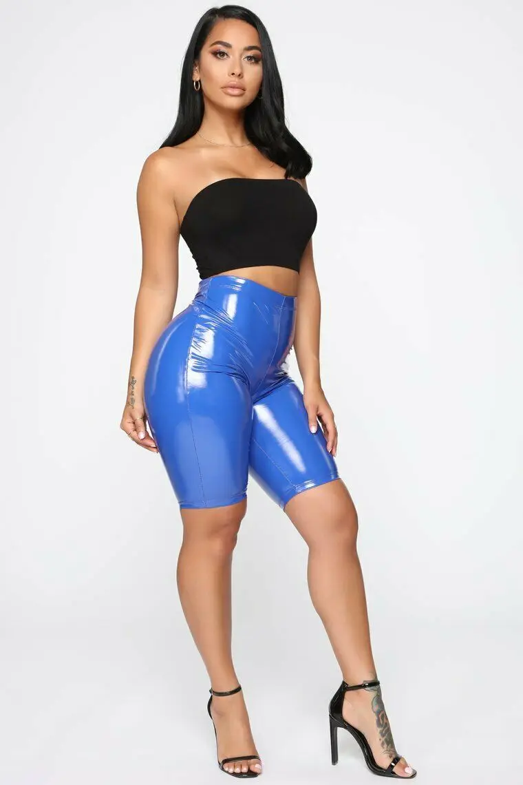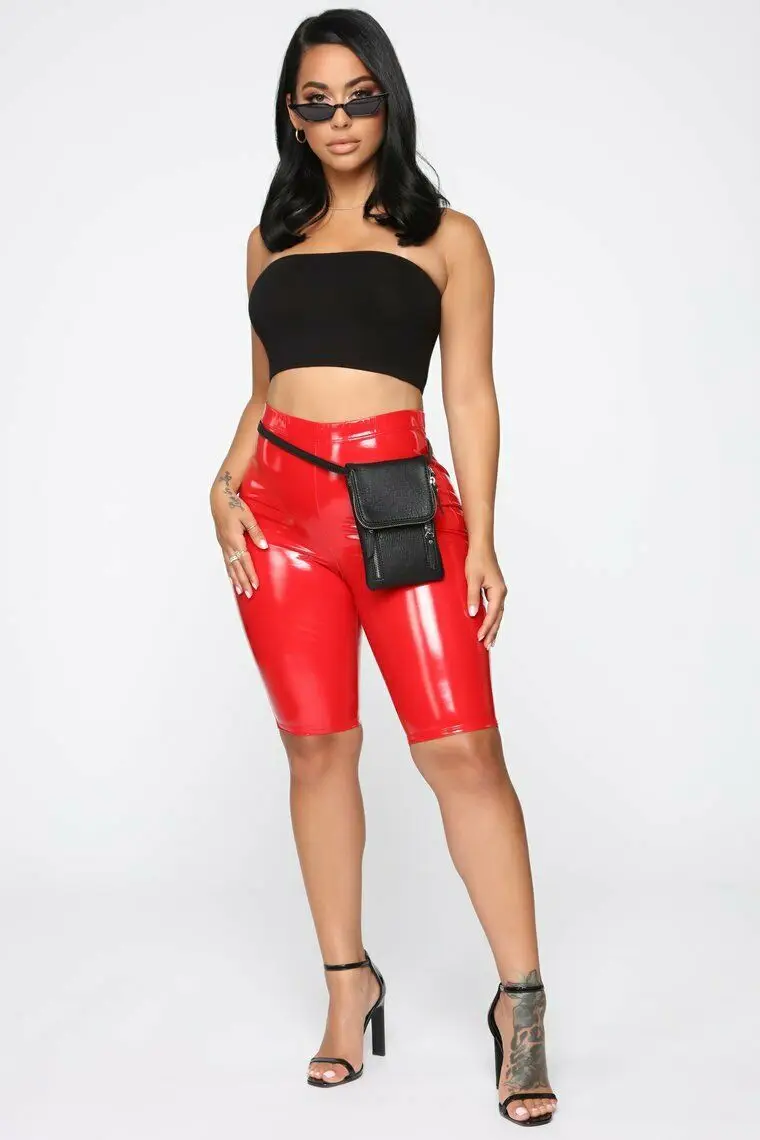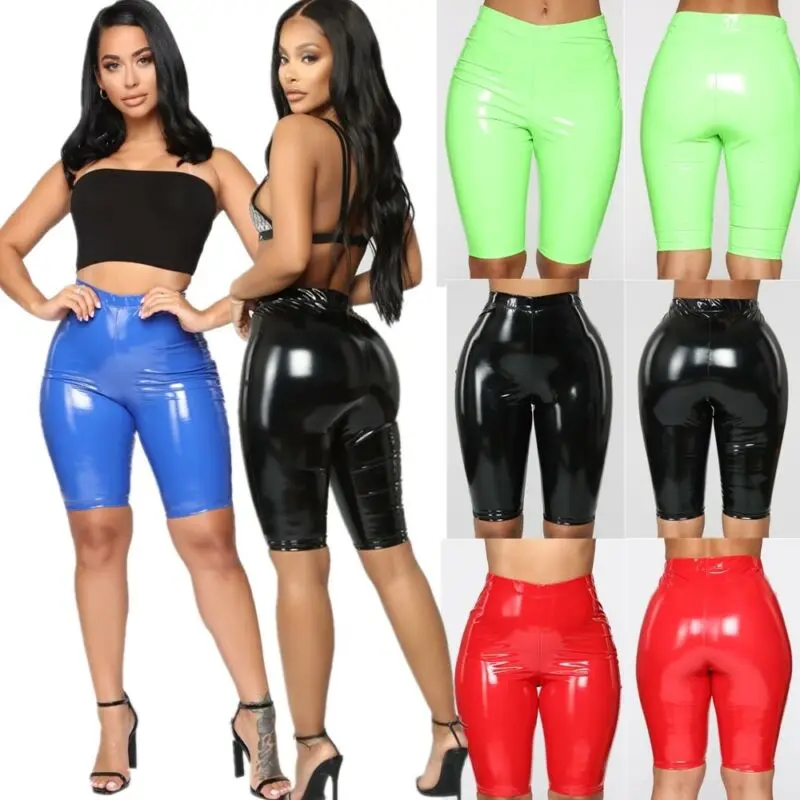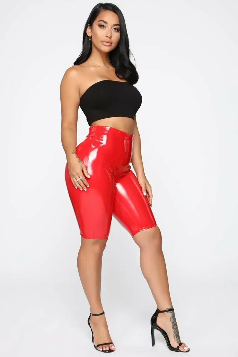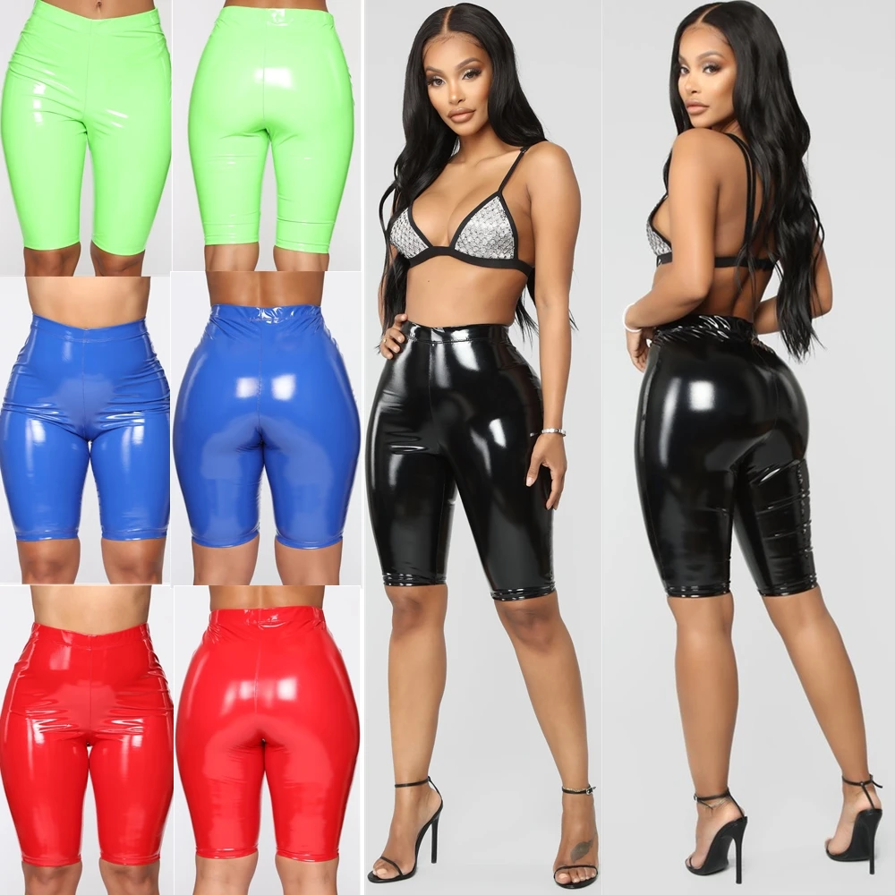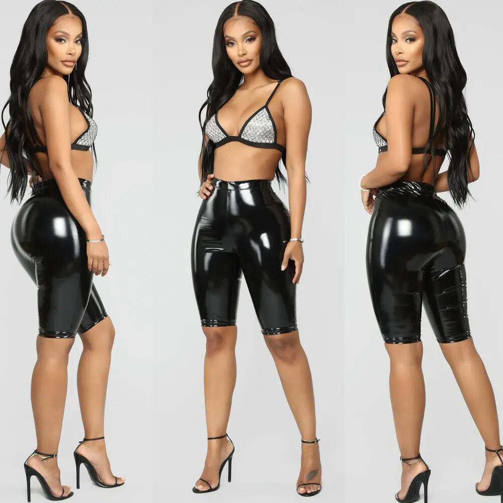 Женские сексуальные мокрые шорты-капри из искусственной кожи, Клубная одежда с высокой талией, облегающие до колена, женская одежда на лето 2020