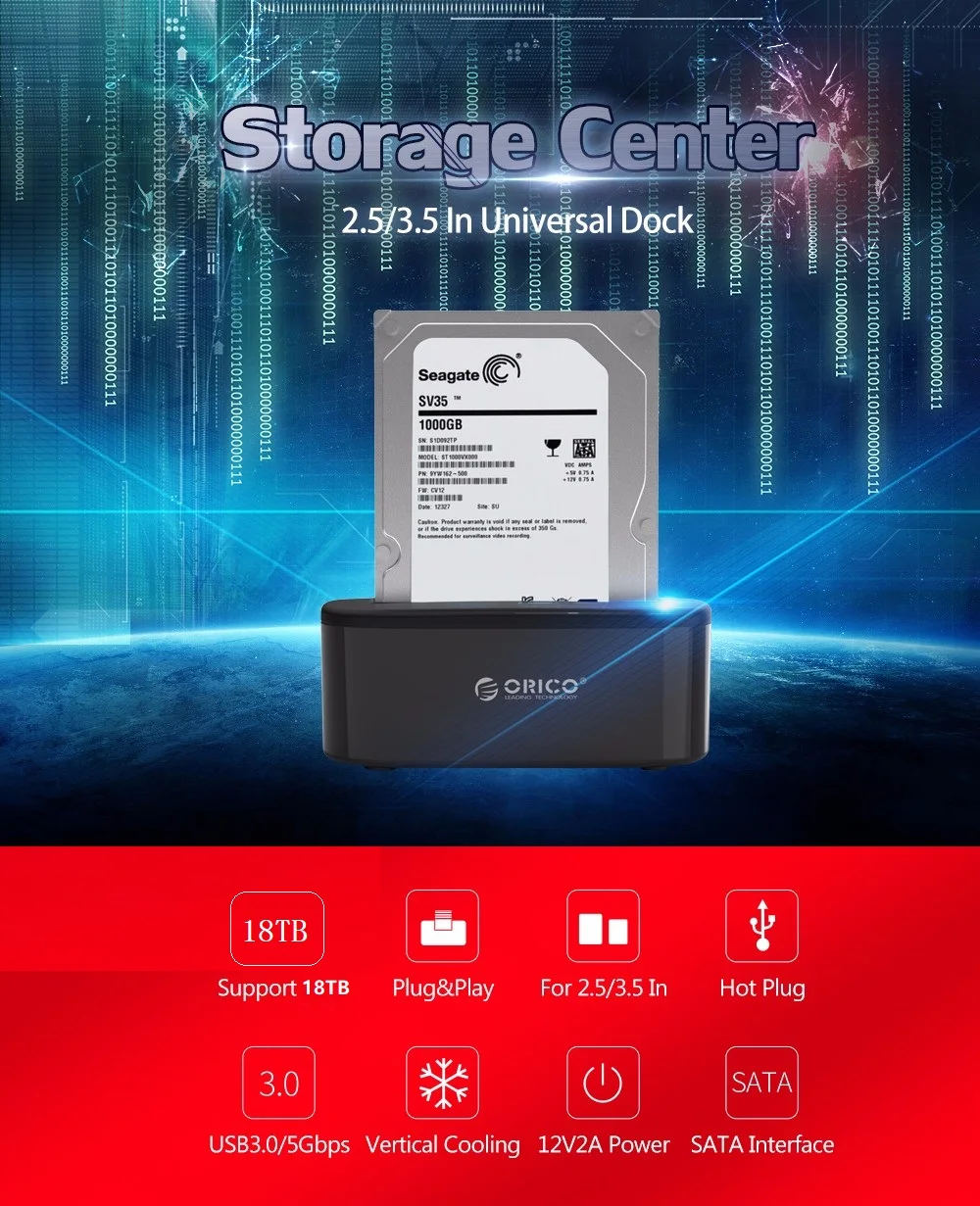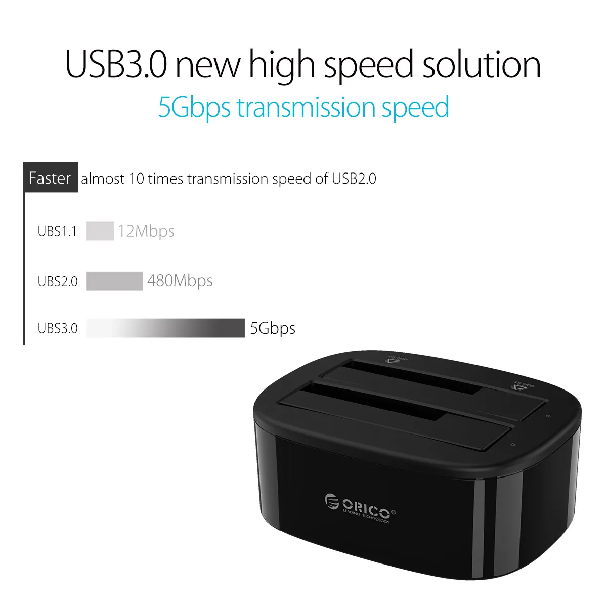 Док-станция для жесткого диска ORICO 6218US3 UASP 2,5, 3,5 дюйма, USB3.0, 18 ТБ