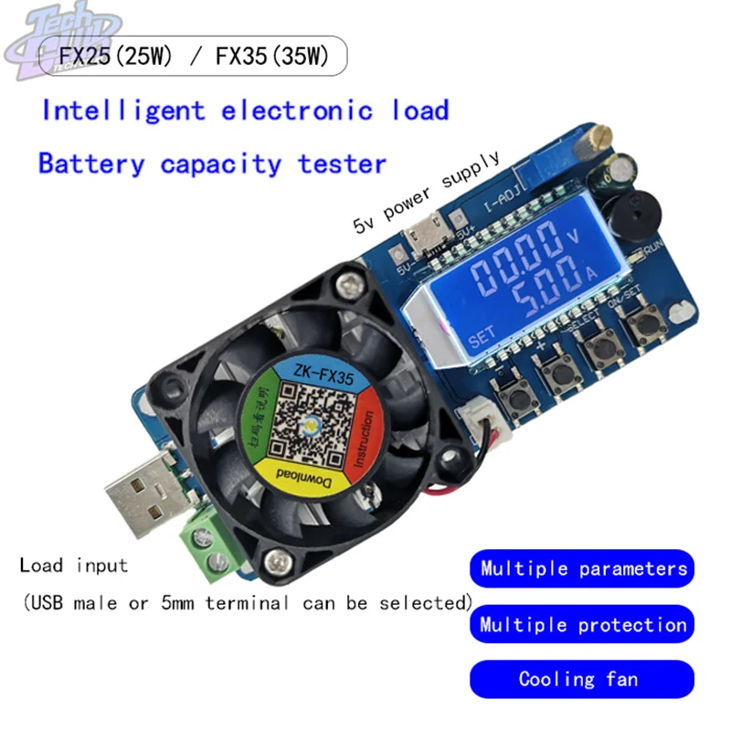 FX25/FX35 электронный тестер емкости аккумулятора Интеллектуальный вентилятор контроля температуры USB детектор мощности регулируемый резистор