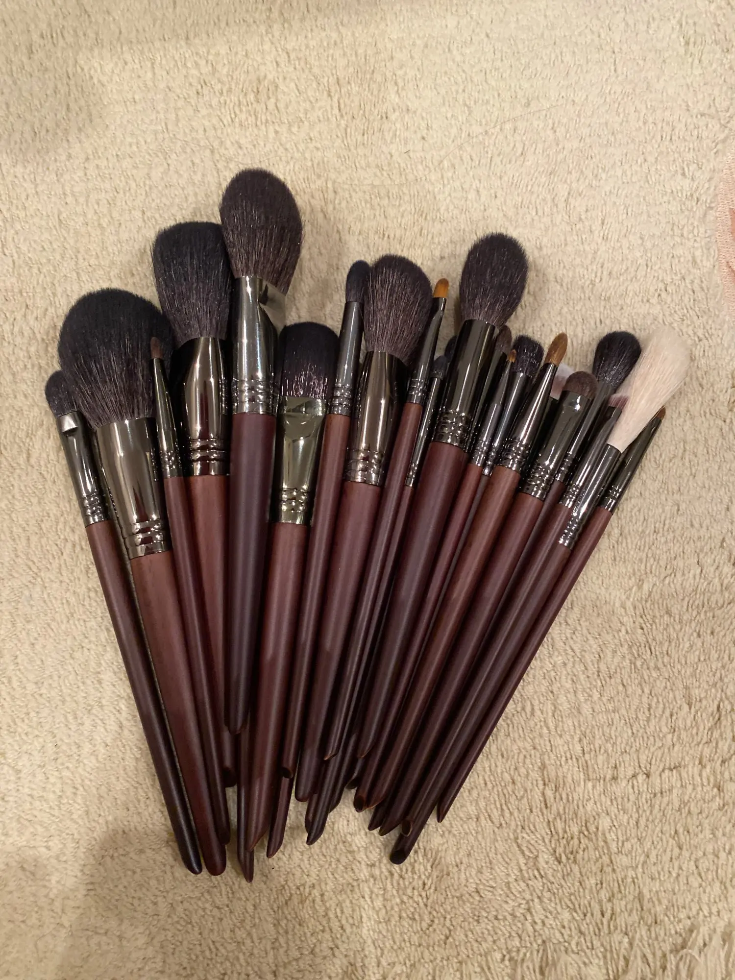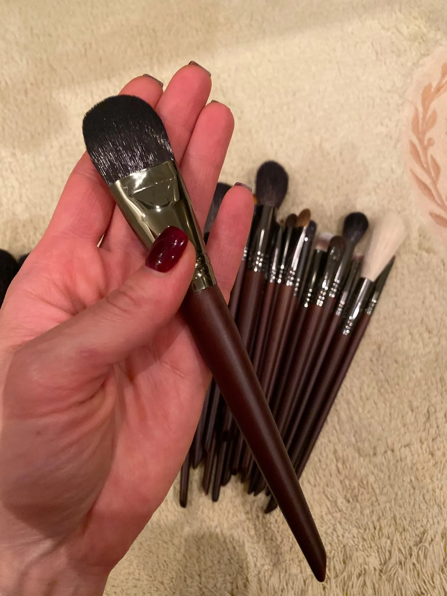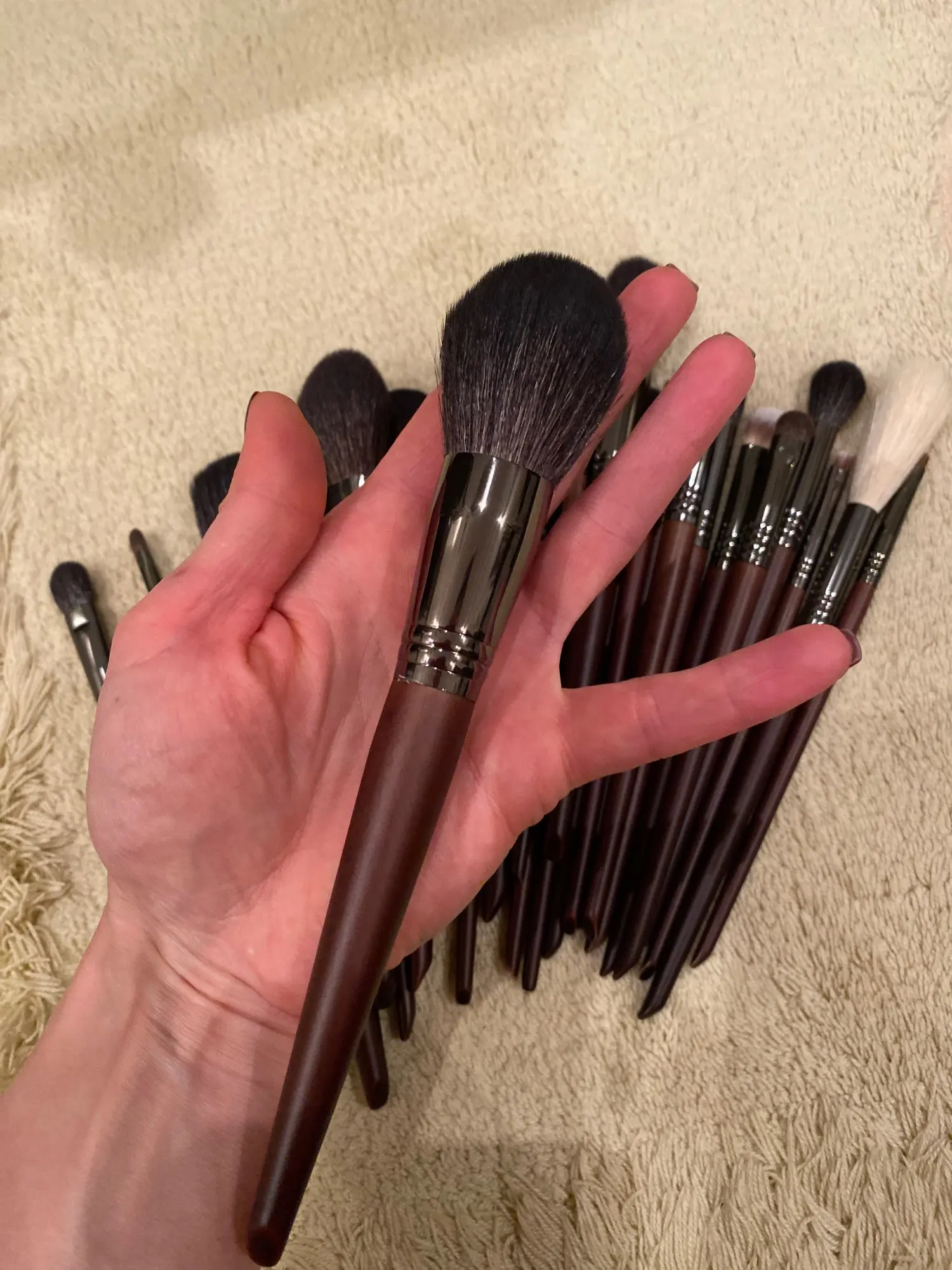 Красивый набор кистей. Он поставляется с футляром для хранения более красивой деревянной коробки (я выбрал этот вариант). Щетки мягкие при контакте с кожей, ручка мягкая и прочная. Это как дерево. Они хорошо выглядят. Я рекомендую набор 100%