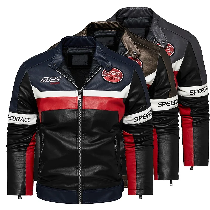 Мужская байкерская куртка из искусственной кожи, куртка-бомбер с вы...