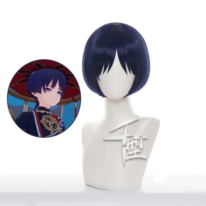Парик для косплея Game Genshin ударопрочный темно-синий, скарахие, термостойкие синтетические волосы для мужчин и женщин, карнавальные парики для вечеринок