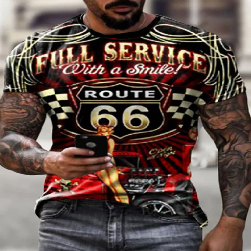 Футболка мужская с надписью Route 66, повседневная спортивная одежд...