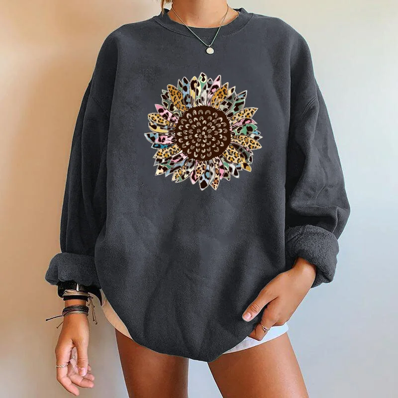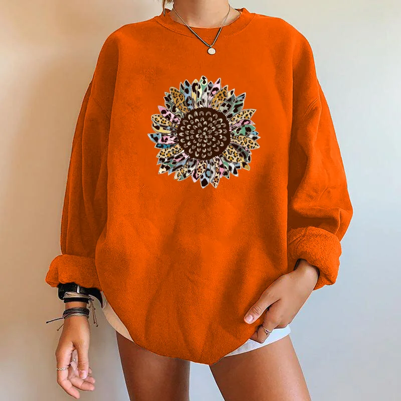 Женский свитшот большого размера в стиле Харадзюку, с принтом подсолнуха, уличный пуловер с длинным рукавом, топы со спущенными плечами