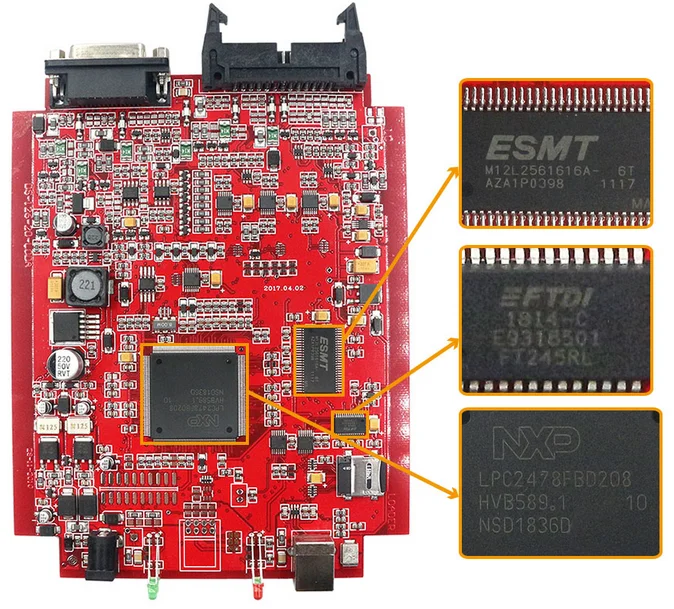 Лучшая версия ЕС KTAG V7.020 с Красной печатной платой (с фильтрами Murata) + красная 3D наклейка + 4 светодиодный