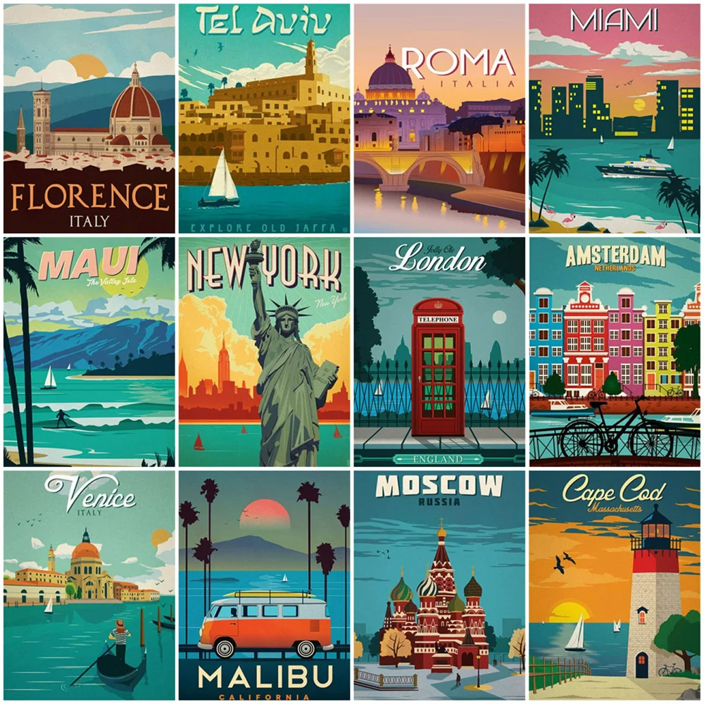 HUACAN DIY картинки по номеру город пейзажные наборы домашний декор...