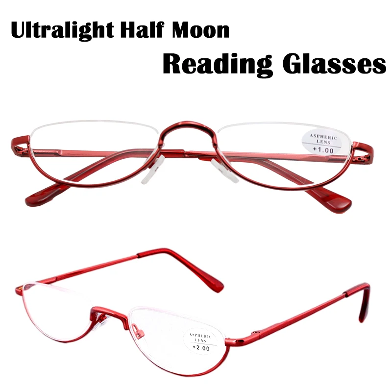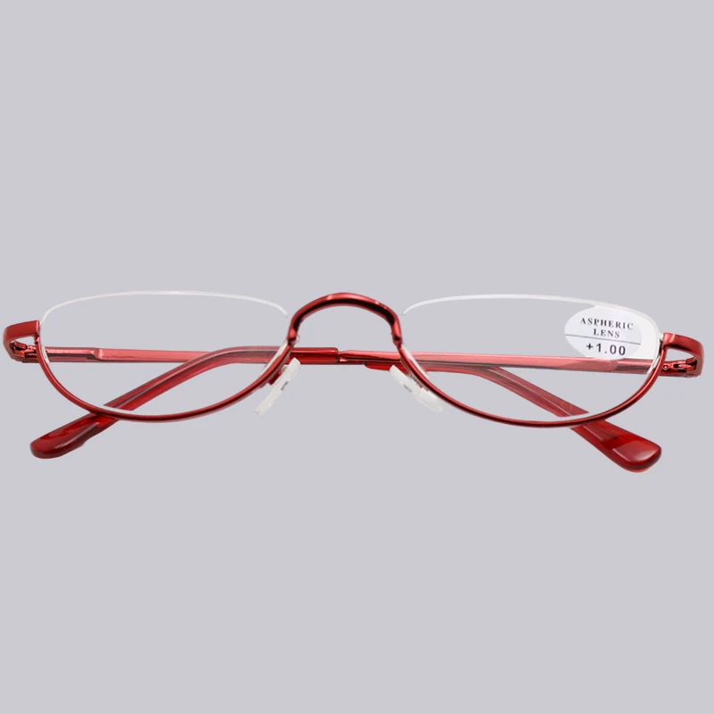 Модные маленькие очки для чтения с полулуной, женские ультралегкие прозрачные полуоправы, металлические пресбиопические очки, портативный подарок, Золотой/красный