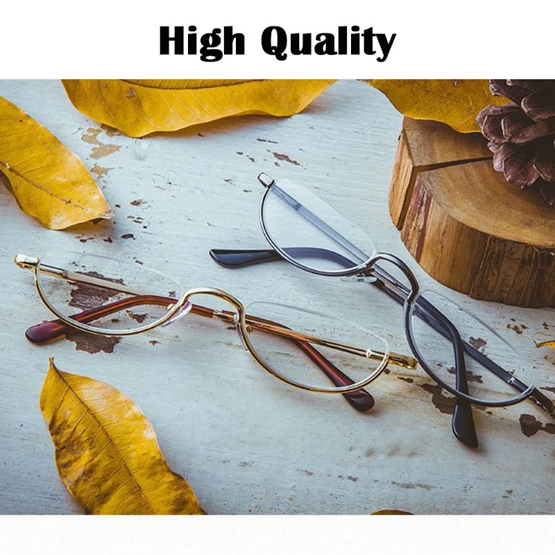 Модные маленькие очки для чтения в форме полумесяца, женские ультралегкие прозрачные очки в полуоправе, металлические пресбиопические очки, портативный подарок, золотыекрасные