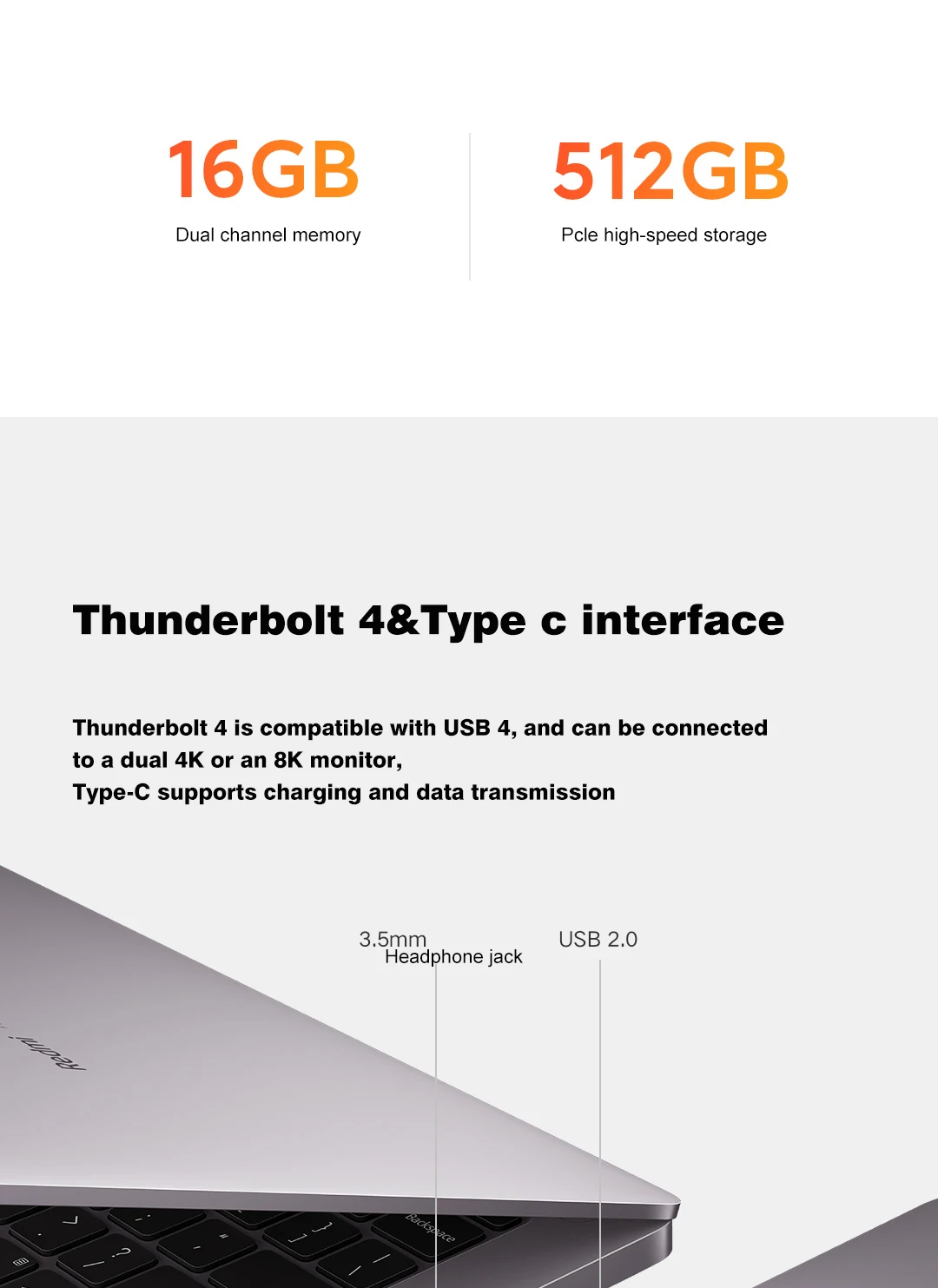 Интерфейс USB-C x 1, поддержка зарядки и передачи данныхThunderbolt 4x1Интерфейс USB2.0 x1Интерфейс USB3.2Gen1 x13,5 мм разъем для наушников микрофона-1 шт.Интерфейс HDMI X 1