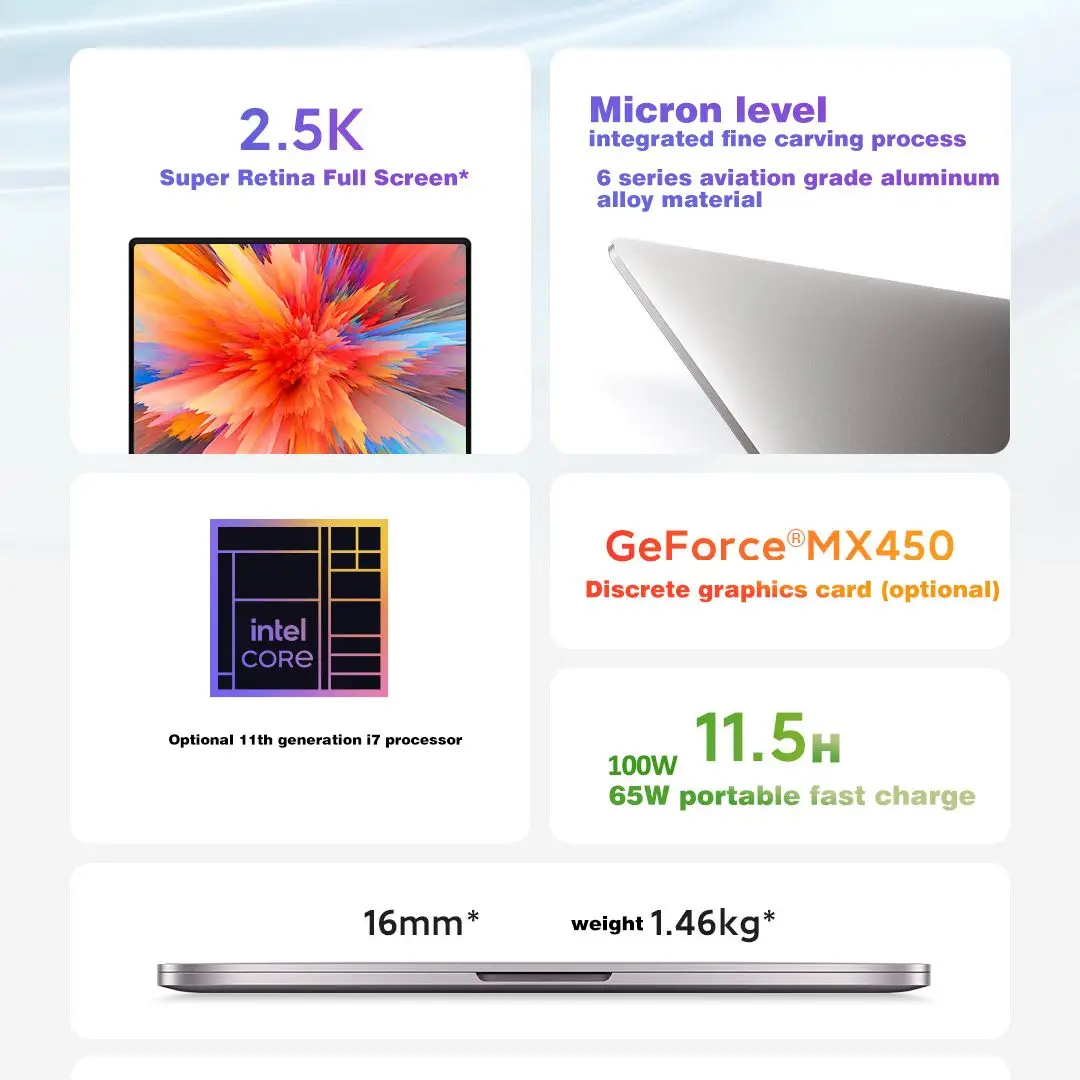 Ноутбук Xiaomi Mi RedmiBook Pro, 14 дюймов, Intel Core i7-11370Hi5-11300H, 16 ГБ DDR4, 512 Гб SSD, 2,5 K FHD Slim, Win10