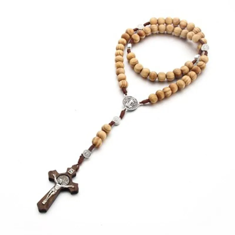 Ожерелья ручной работы с деревянным крестом Иисуса и бусинами, изящные кулоны на цепочке, религиозные украшения и аксессуары, подарок, 2 вида