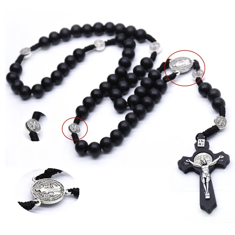 Ожерелье из черного дерева с подвеской-крестом в виде Розария
