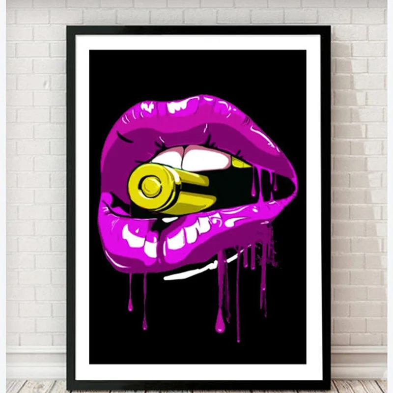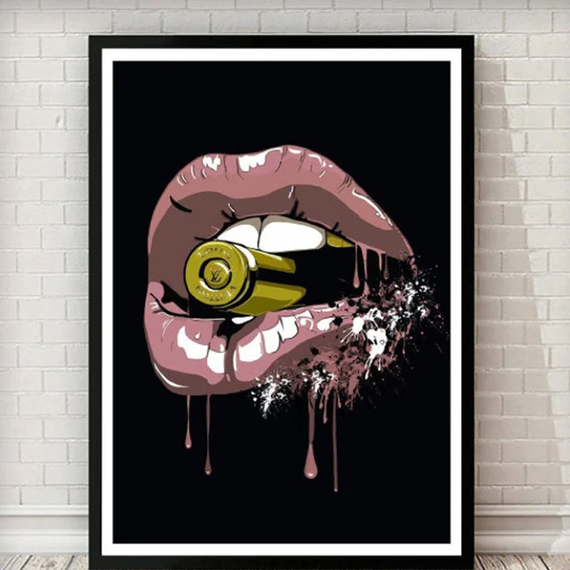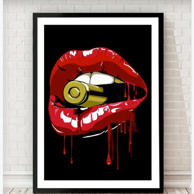 Современный плакат с красными губами и пулями, картины, принты HD, картины, напечатанные на холсте для дома, комнаты, эстетическое украшение, настенное искусство