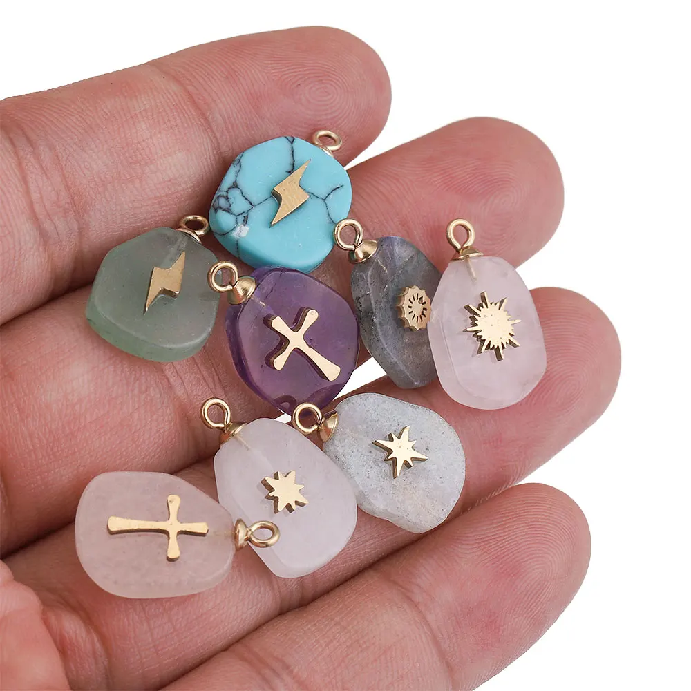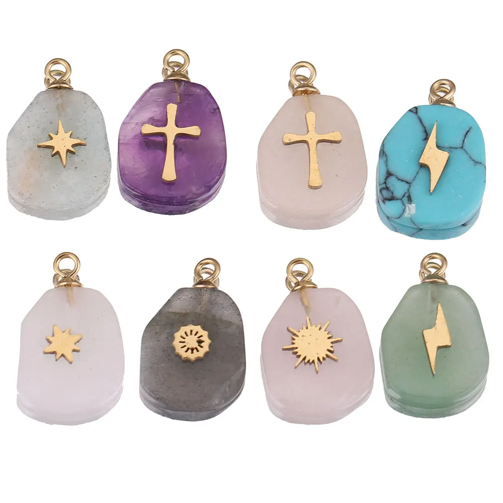 5 шт. Крест Звезда молния натуральный камень нержавеющая сталь Золото дизайнерские Очаровательные Подвески DIY браслет серьги ожерелье ювелирные изделия