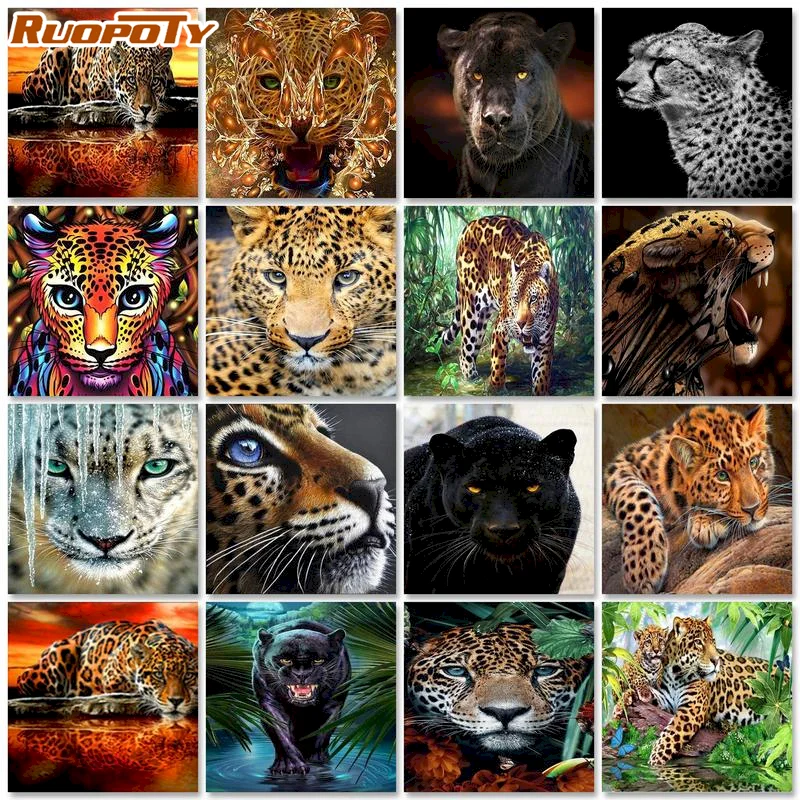 Алмазная живопись RUOPOTY, леопардовая полноразмерная картина с животными, наборы для вышивки крестиком, Алмазная мозаика, вышивка, искусство, домашний декор, новое поступление