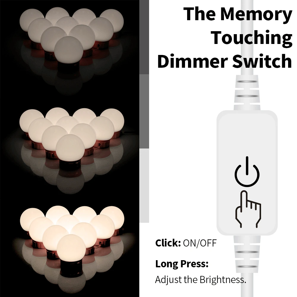 Светодиодная лампа для зеркала для туалетного столика с USB, декоративный приглушаемый светодиодный светильник для комнаты, косметики, зеркал