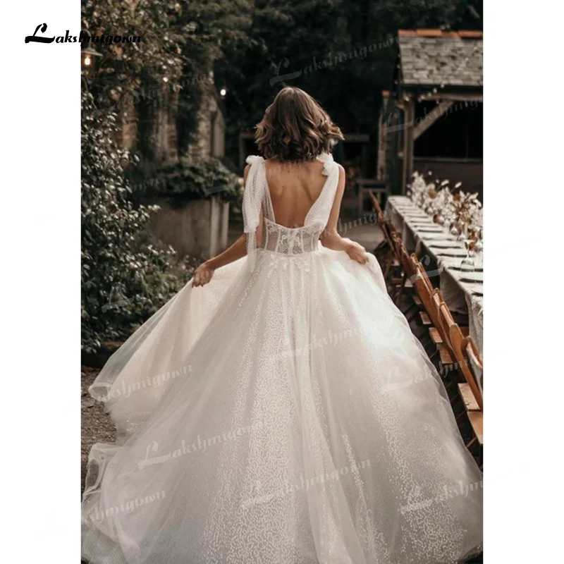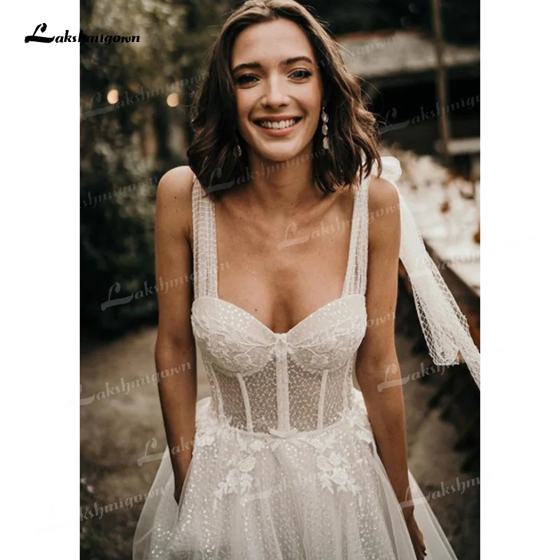 Современные Блестящие трапециевидные тюлевые Свадебные платья с разрезом сбоку вырезом сердечком без рукавов кружевные платья с аппликацией со шлейфом для невесты