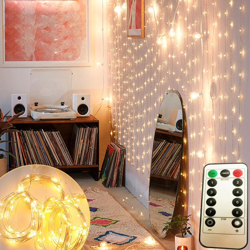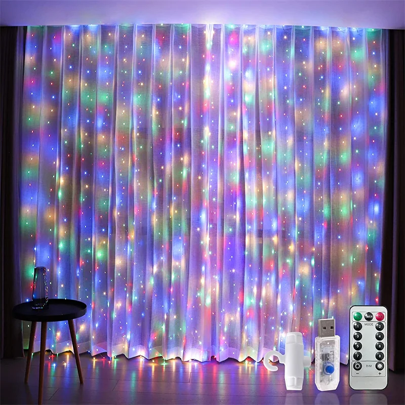Светодиодная гирлянда с дистанционным управлением через USB, свадебная гирлянда, занавеска, настенная лампа, праздничное украшение для спальни, уличное сказочное украшение