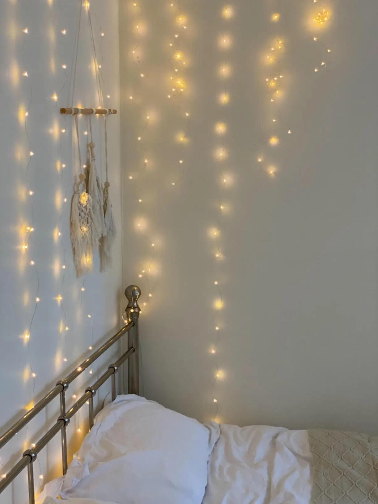 Отличное освещение. Питание от USB, они дали пульт дистанционного управления и кнопку управления. У них есть крючки для каждой отдельной нити. Разные цвета: розовый, теплый белый, синий, зеленый.