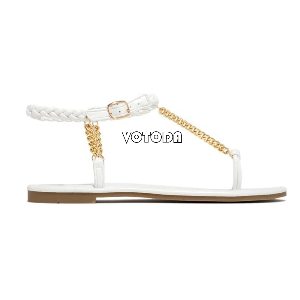 Летние женские вьетнамки на плоской подошве; Модные плетеные шлепанцы с металлической цепочкой; Женские пляжные сандалии; Повседневная Уличная женская обувь; Большие размеры