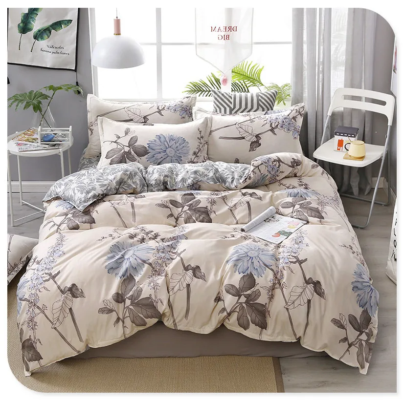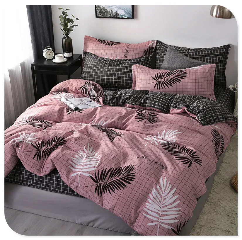 Горячая Распродажа, набор постельного белья с принтом, плоский простынь, домашний цветочный пододеяльник с растительным рисунком, Набор наволочек, мягкое двойное постельное белье королевского размера