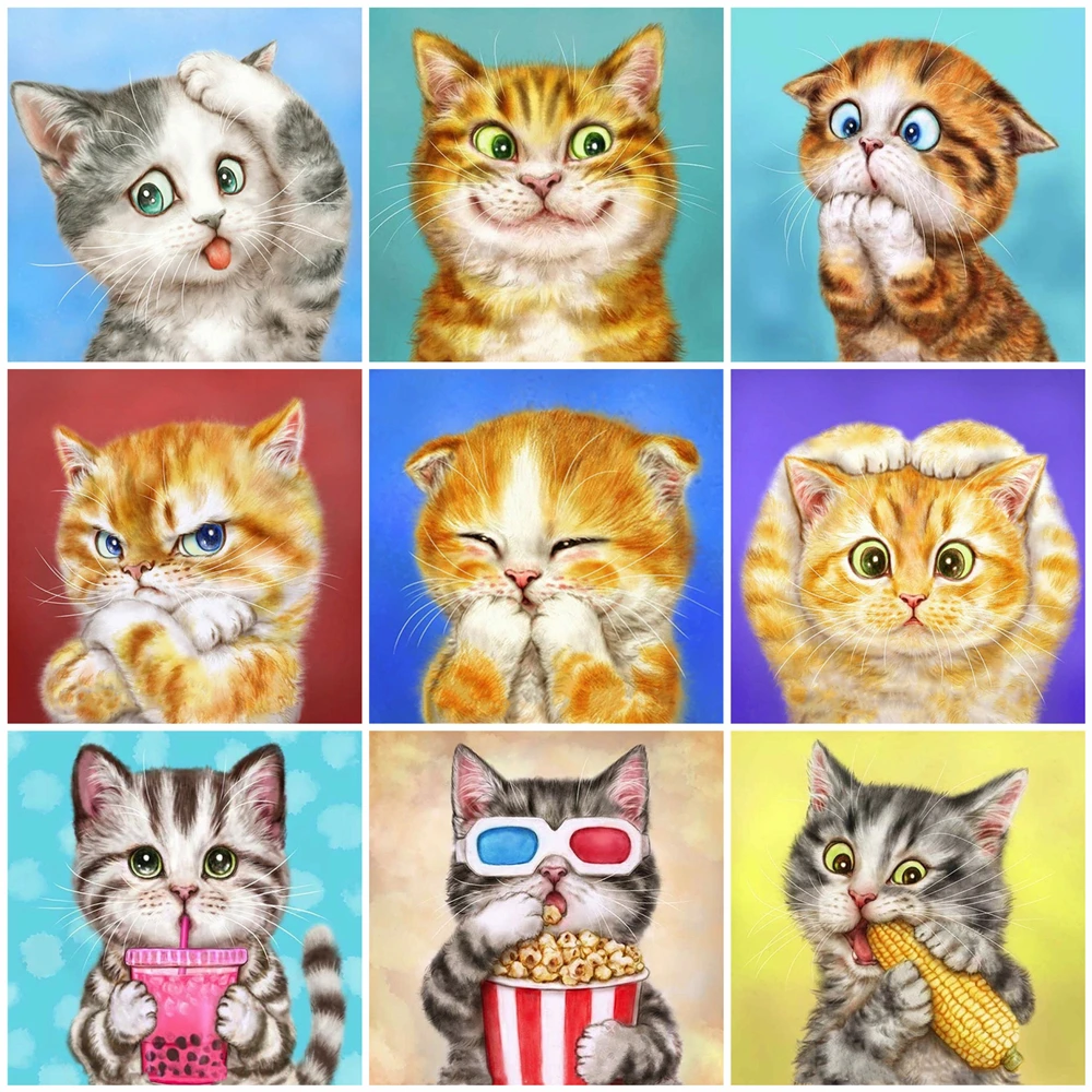 Алмазная вышивка SJDIYDP 5D, алмазная вышивка, кошки, стразы, живот...