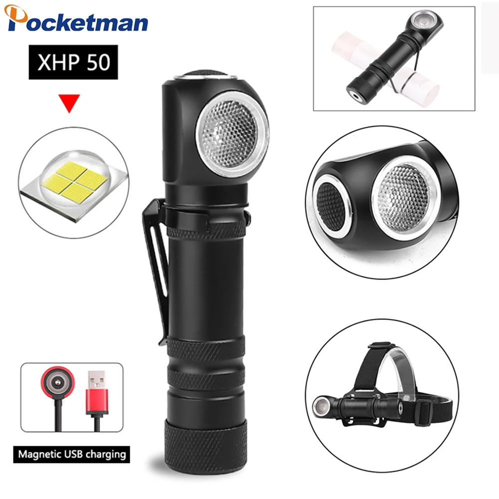 Светодиодный фонарик XHP50, магнитный задний фсветильник рь, зарядка через USB, водонепроницаемый, со встроенным аккумулятором