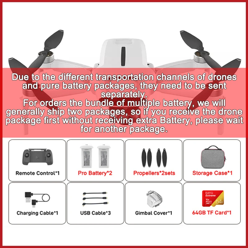Мини-Дрон с камерой FIMI X8(Из-за различных транспортных каналов Дронов и чистых аккумуляторов, они должны быть отправлены отдельно. Для заказов комплект из нескольких аккумуляторов мы обычно отправляем две упаковки. Если вы получили посылка дрона, не получив дополнительный аккумулятор, пожалуйста, подождите еще одну посылка.)