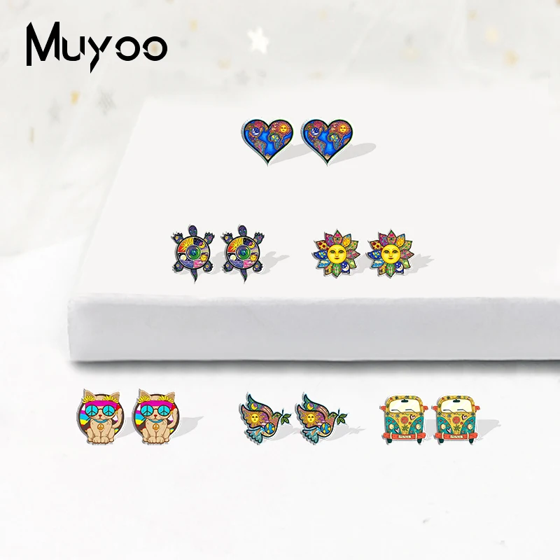 2021 новые милые серьги-гвоздики в виде Красота и с рисунком из мул...