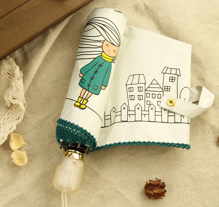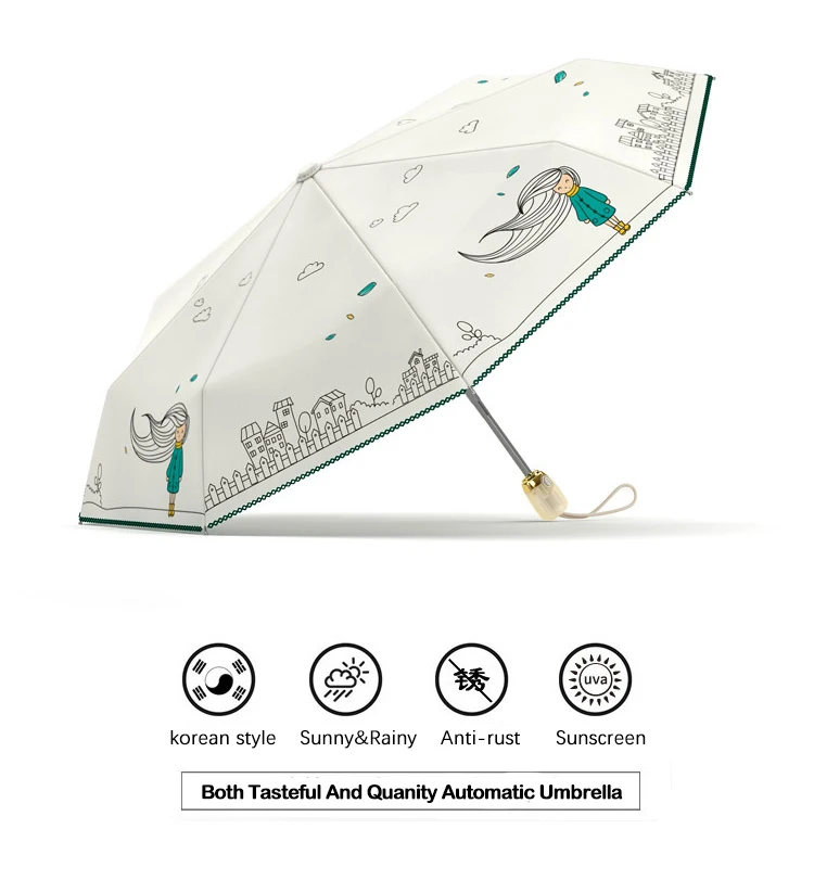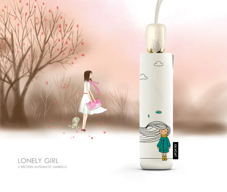OLYCAT "Lonely Girls" стильный модный автоматический складной зонт, Солнцезащитный анти-УФ черное покрытие внутри.