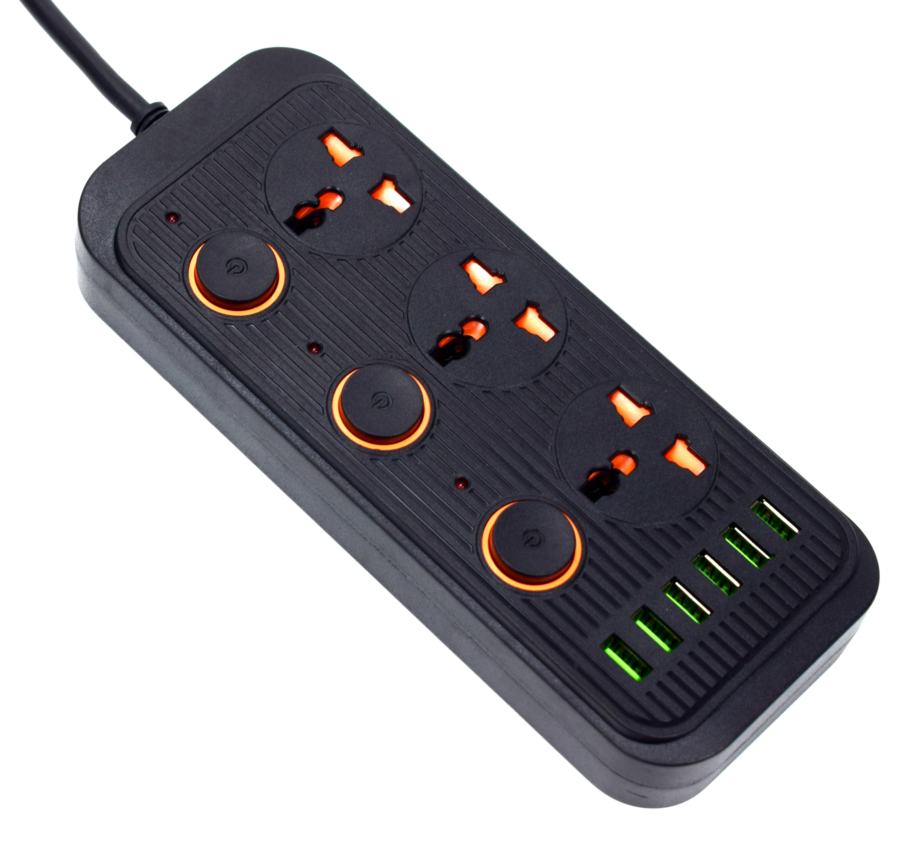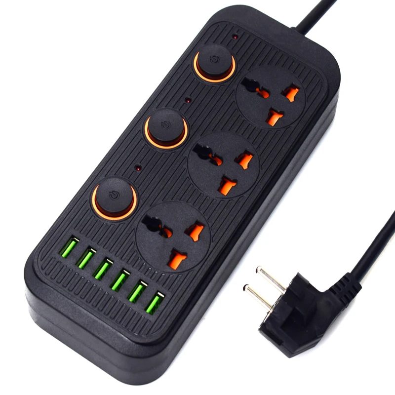 Сетевой удлинитель с 2 круглыми контактами, 6 USB-портов, 1,8 м