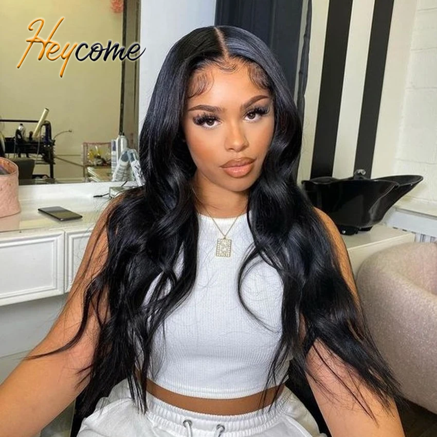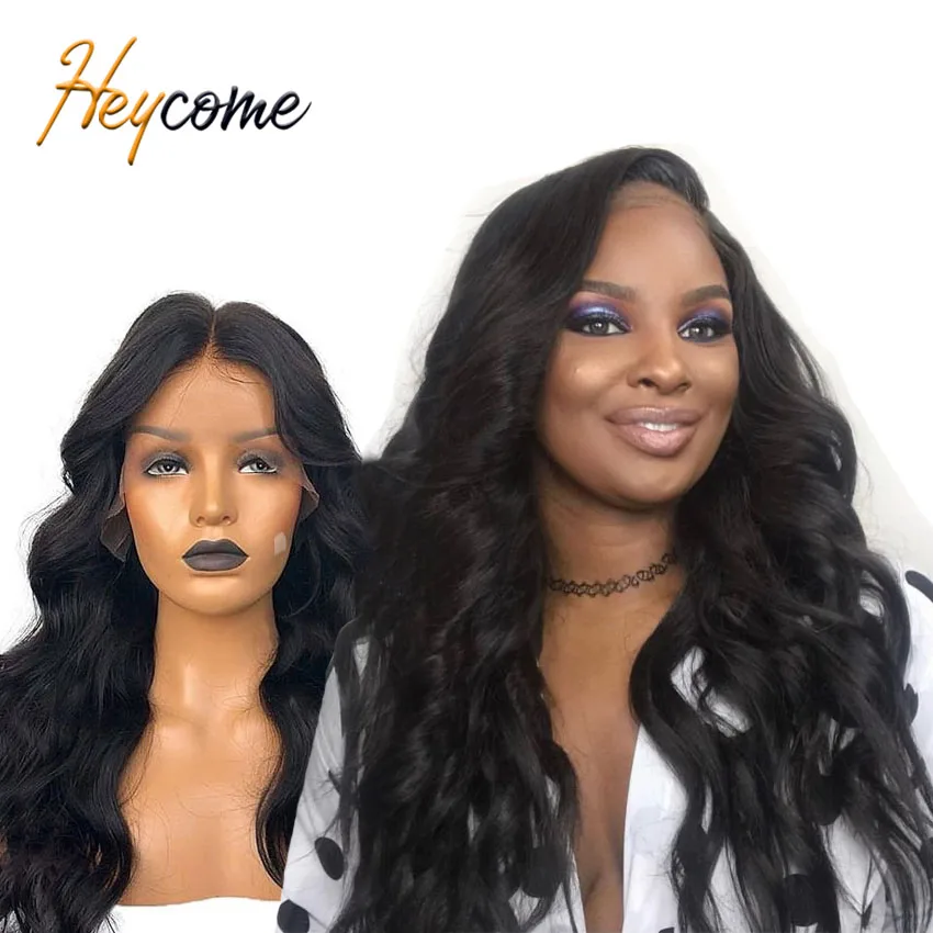 Heycome перуанская HD Прозрачная объемная искусственная волна 32 36 40 дюймов Закрытие 13x6 человеческие волосы передний парик для черных женщин