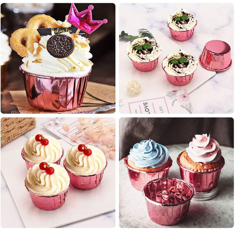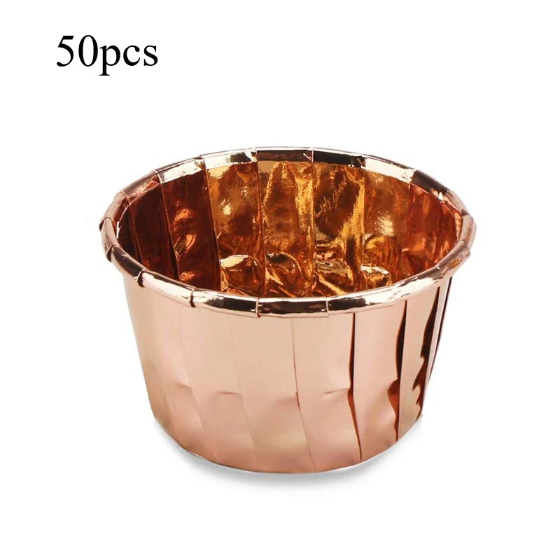 50x розовое золото фольга Бумага Кекс вкладыши золото/розовое золото/серебро/Розовый тюльпан чистый цвет выпечки Маффин чашки обертки для пирожных Чехол держательОписание: