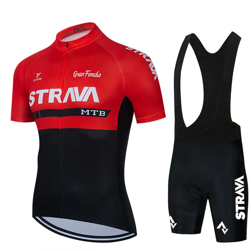 2022 красная Команда STRAVA, летний мужской комплект из Джерси с коротким рукавом для езды на велосипеде, спортивная одежда для езды на горном велосипеде, комплект для езды на велосипеде, шорты с нагрудником