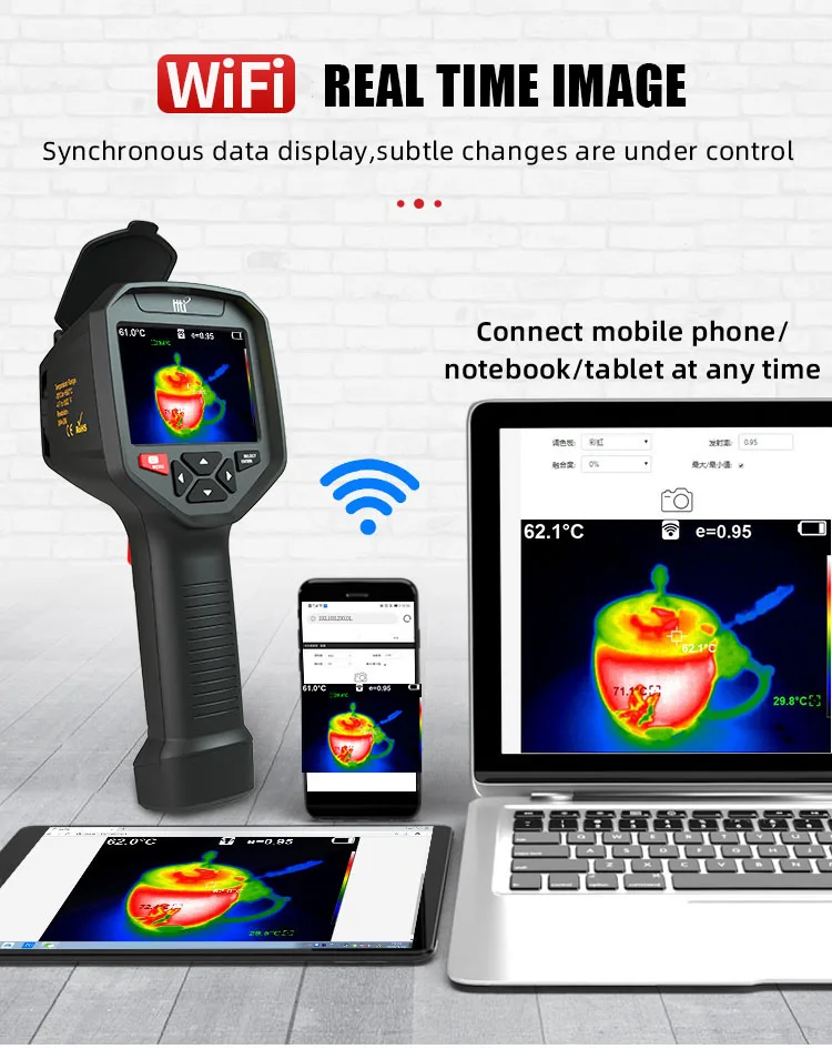 1. Водонепроницаемый и пылезащитный 2. Диапазон измерения температуры: -15 ℃ ~ 550 ℃/(5 ℉ ~ 1022 ℉) 3. Точность измерения температуры; ± 2 ℃/± 2% в зависимости от того, что больше 4. Тепловизионные пиксели: 256x192 (49152) 5. Видимый светильник: 640x480 6. Режим изображения: Тепловое изображение, тепловое слияние, изображение на картинке, видимый светильник 7. Семь цветовых палитр: белый, черный, красный, серебристый, Радужный, высокая контрастность радуги, красный 8. В дополнение к центральной точке, 3 точки измерения температуры могут быть настроены, включая измерение температуры в центре, отслеживание высоких и низких температур и измерение температуры в ключевой области (ROI) 9. Программное обеспечение для анализа ПК, передача изображений в реальном времени 10. Светодиодный светильник, светодиодный Будильник 11.IP65 с настенным креплением уровень защиты, 2-метровый испытание на падение12. Расстояние измерения: 0,2 М ~ 50 м (лучший 1 м)
