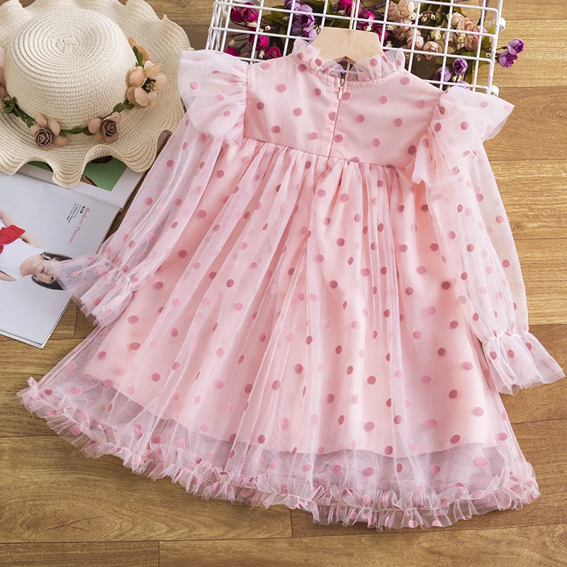 Детское зимнее платье принцессы в горошек, с длинным рукавом