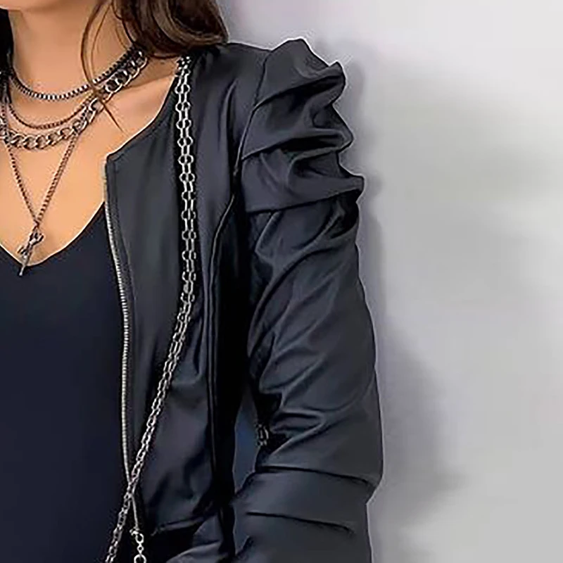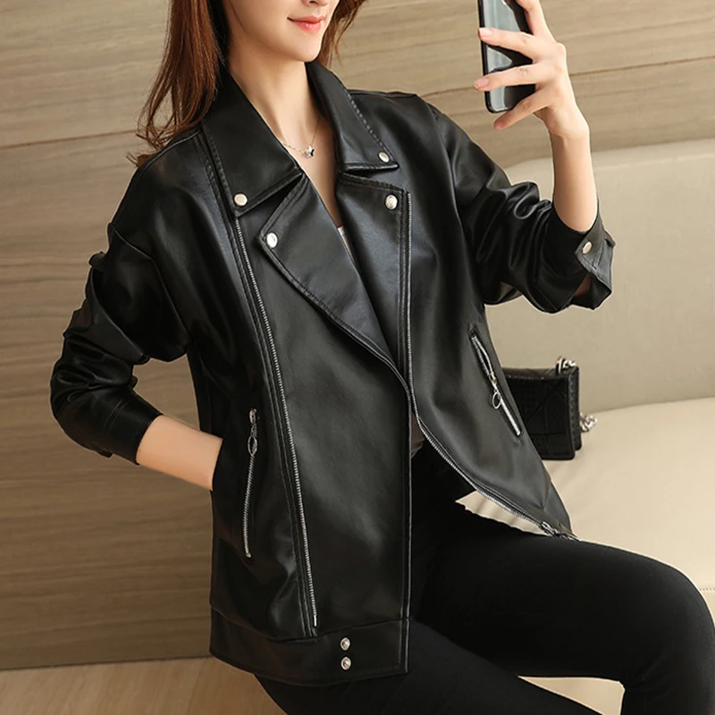Куртка женская из искусственной кожи, на молнии, с отворотом, с длинным рукавом, 5XL
