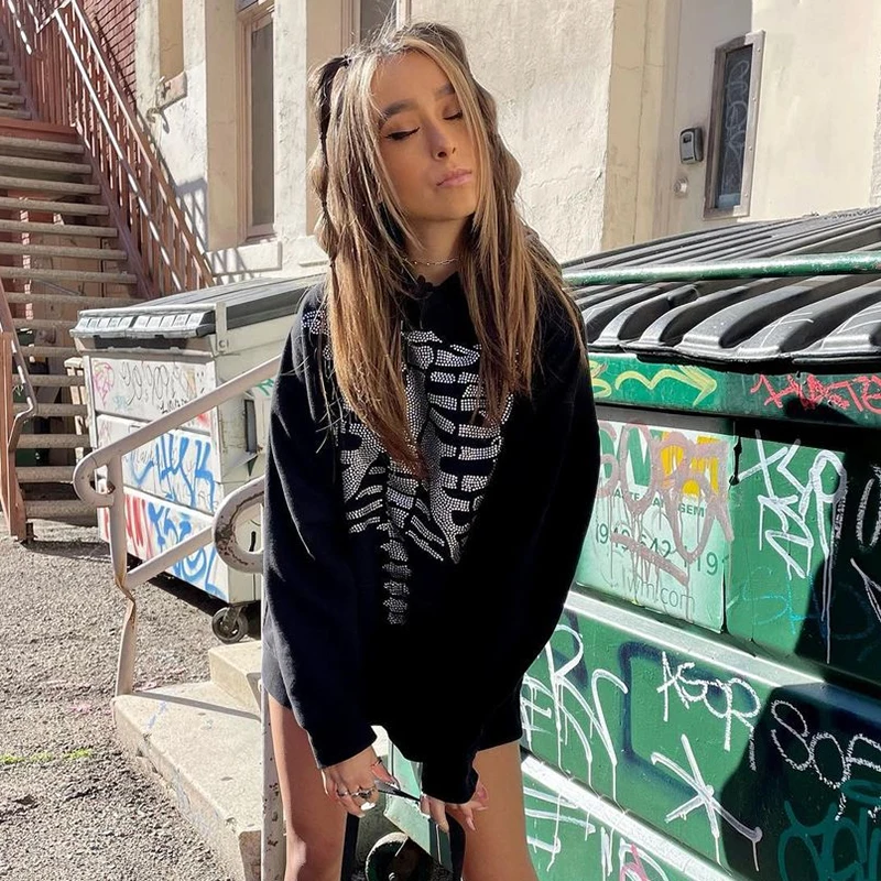 Женская Повседневная Толстовка с капюшоном, готический пуловер с длинным рукавом и стразами, Осенний свитшот в стиле гранж, 2019