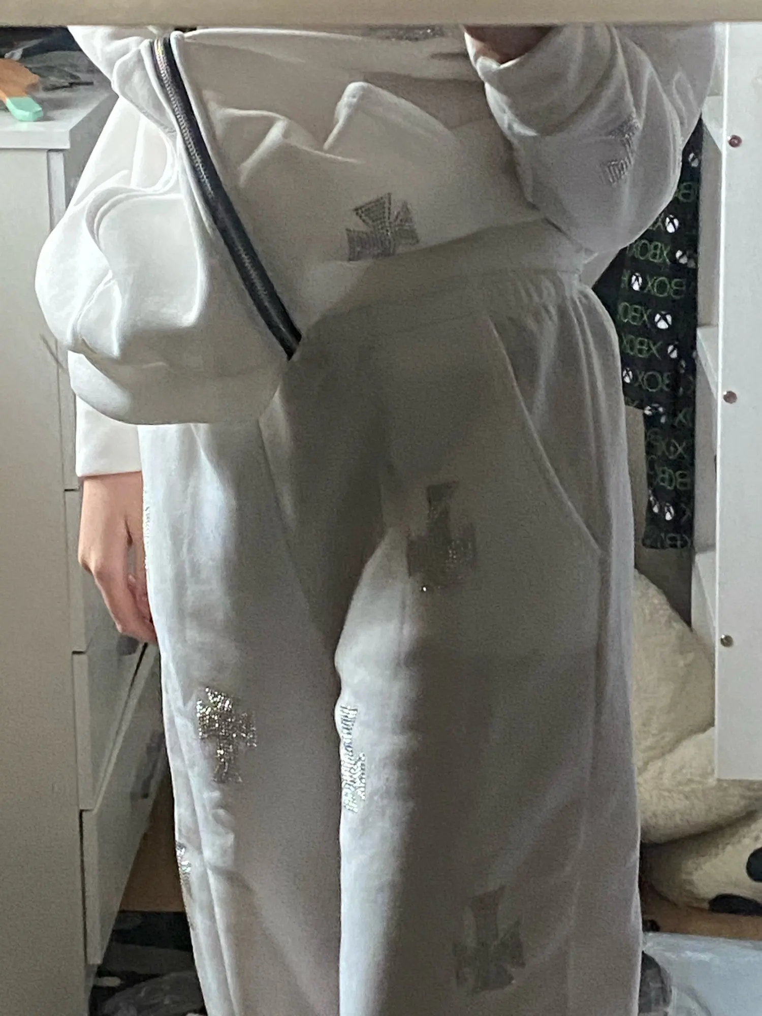 Толстовка Женская на молнии, со штанами оверсайз, стразы, на осень ...