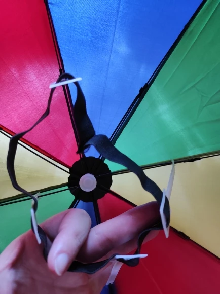 Покупкой довольна: приехала быстро, упакована хорошо, всё работает. Резинка достаточно тугая, подойдёт и ребенку (что и требовалось). Резинка держится пластиковыми штучками (на фото видно). Прикольно будет ходить ребенку в садик в несильный дождик.