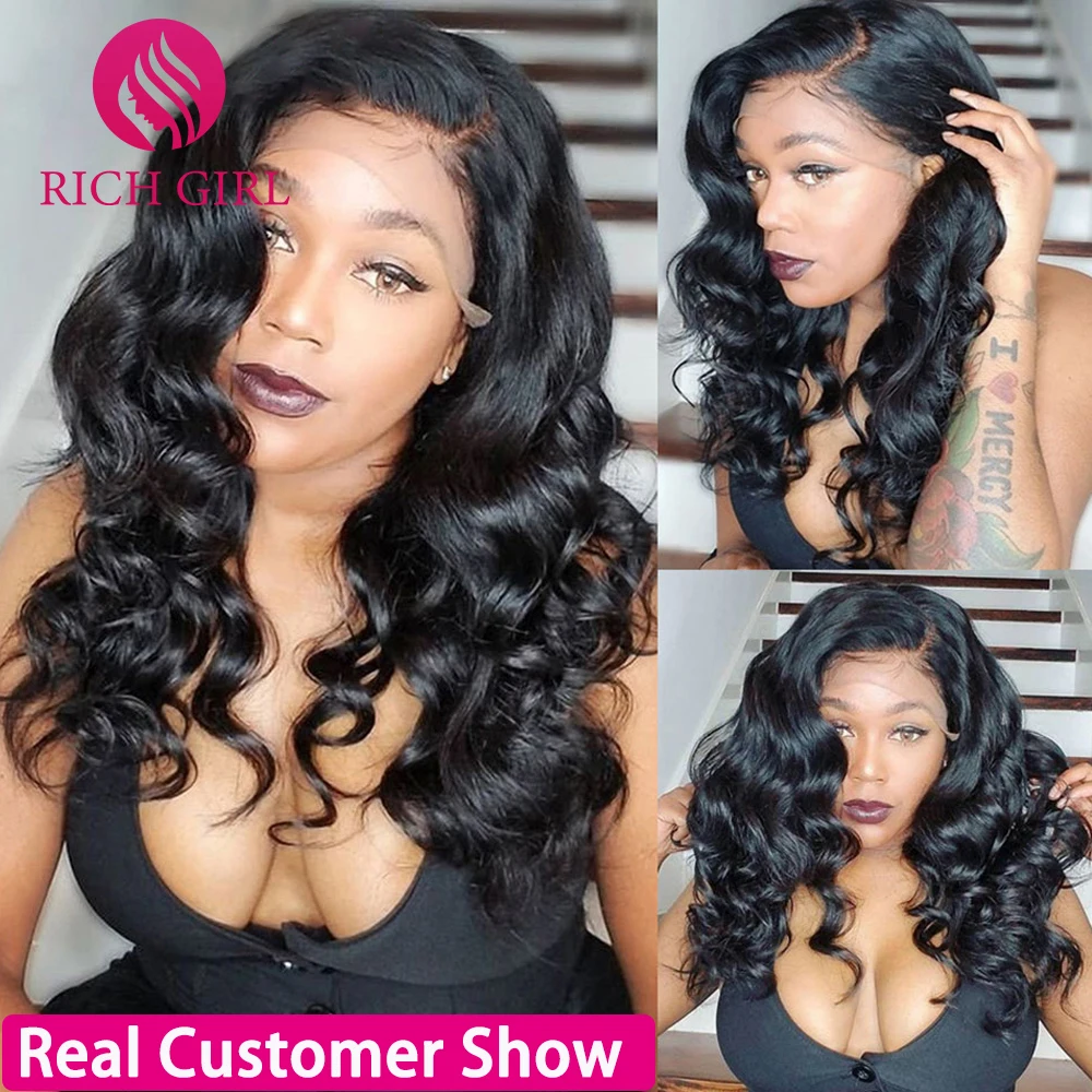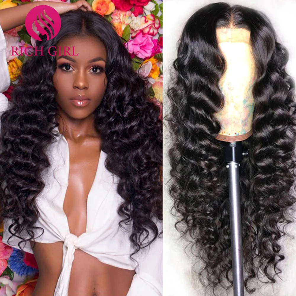Индийские свободные волнистые фронтальные парики Richgirl из человеческих волос на сетке 13X6 HD для черных женщин 4x5x5x6x6 длинный свободный глубокий кудрявый парик на сетке