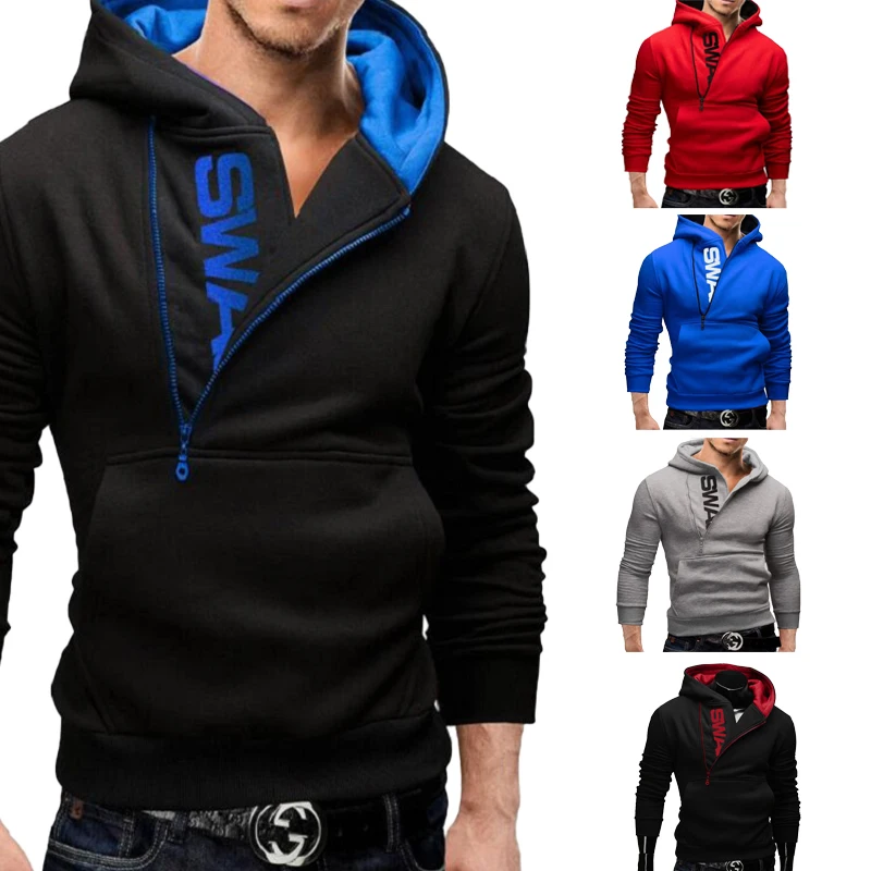 Мужской повседневный спортивный костюм, толстовка на молнии с капюш...