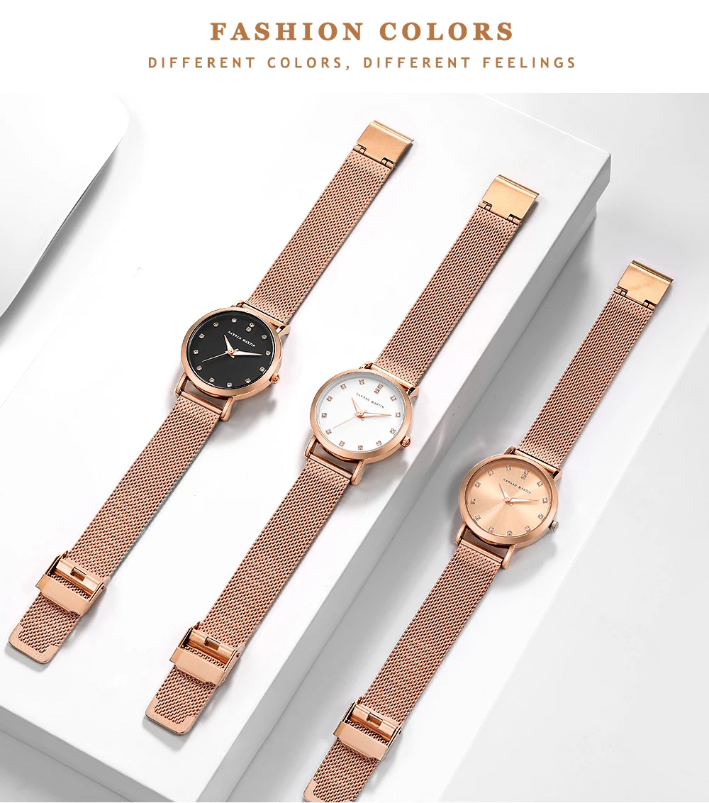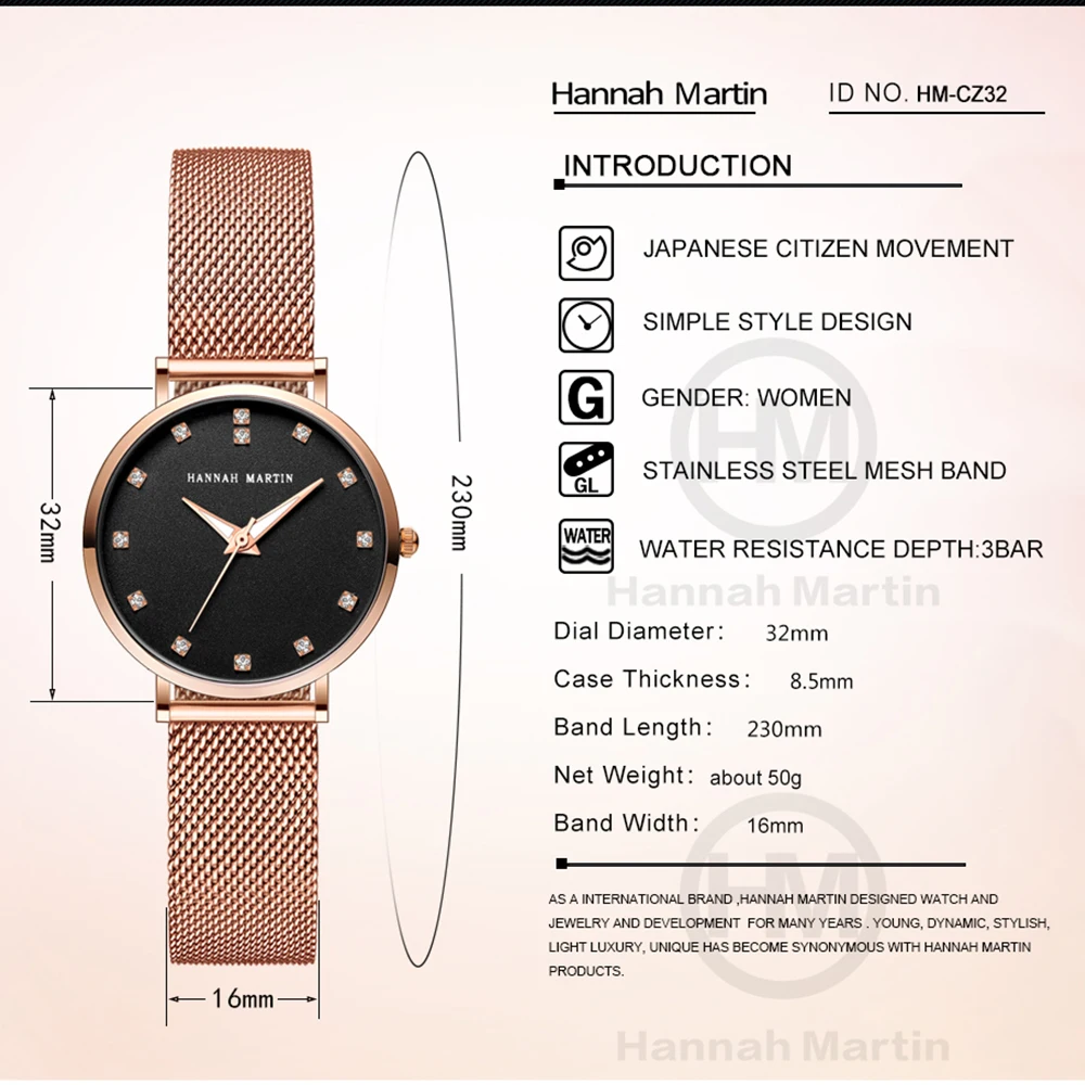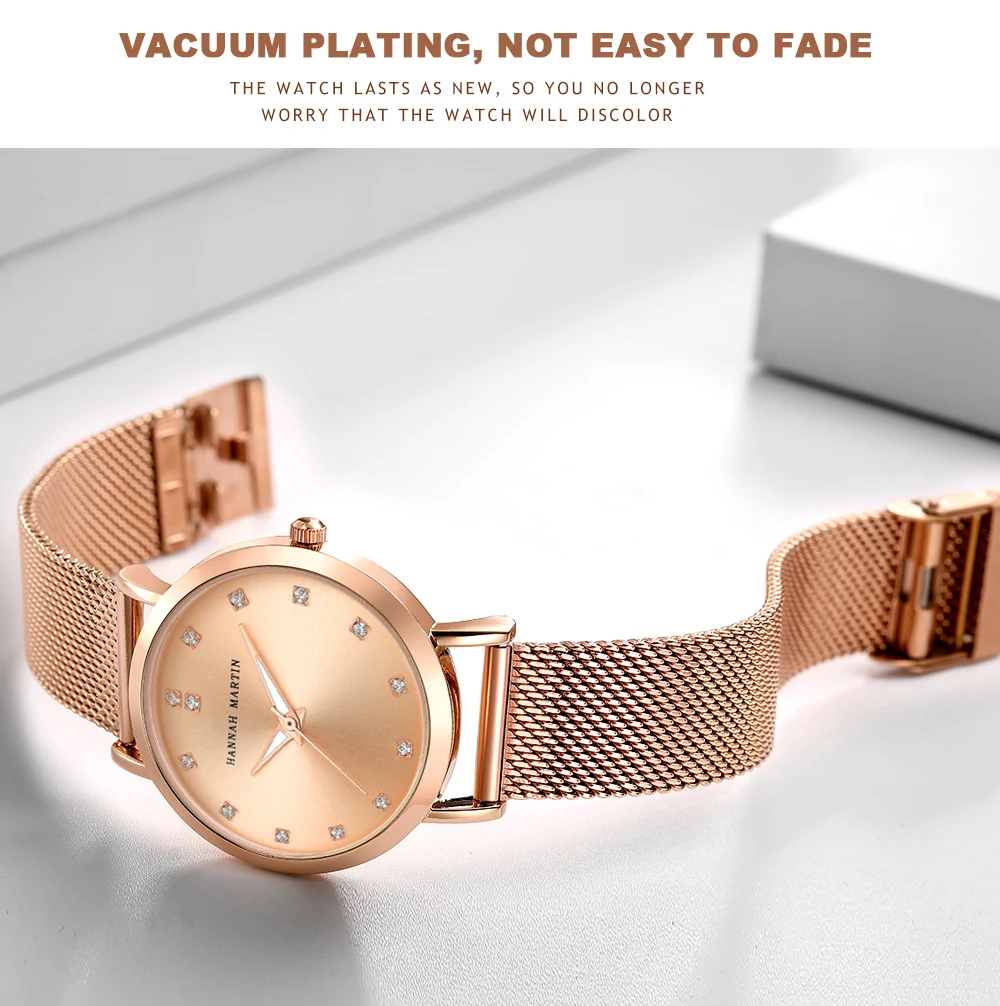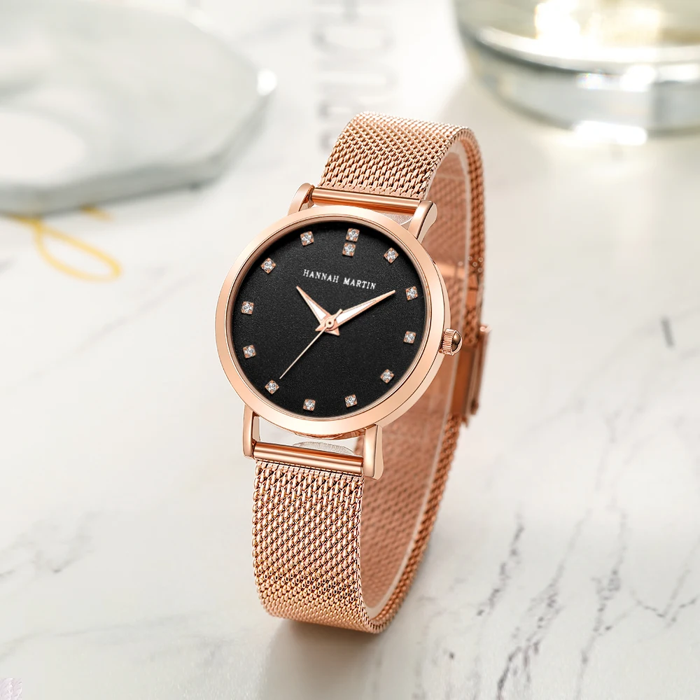 Часы Hannah Martin женские с механизмом MIYOTA 2035, наручные часы для женщин, Миланская сталь, женские кварцевые часы цвета розового золота